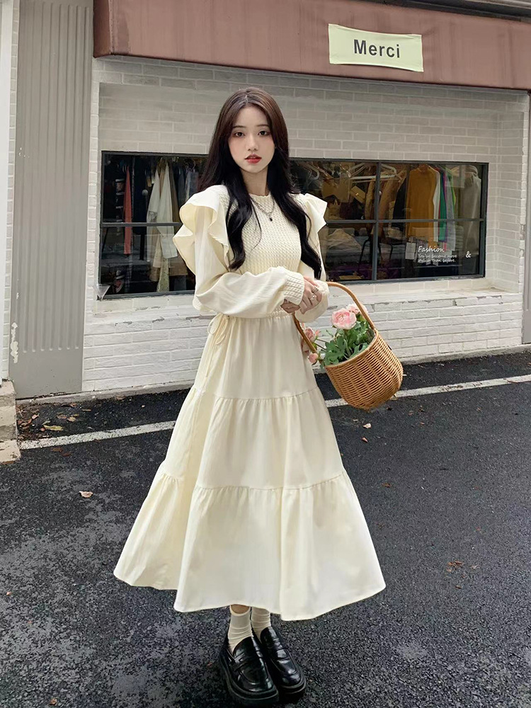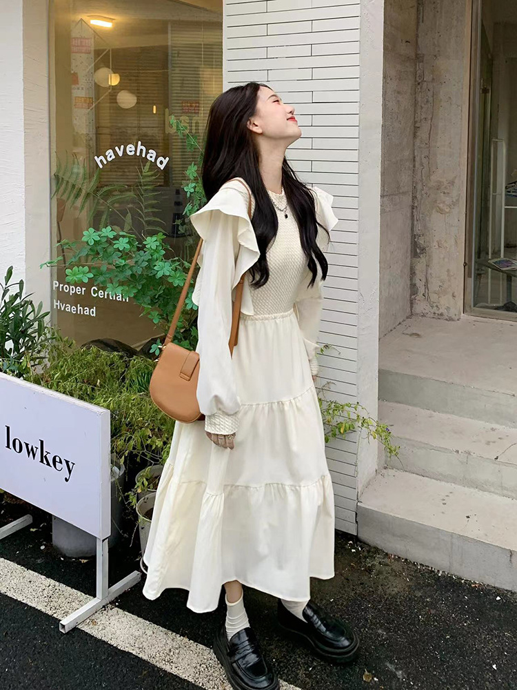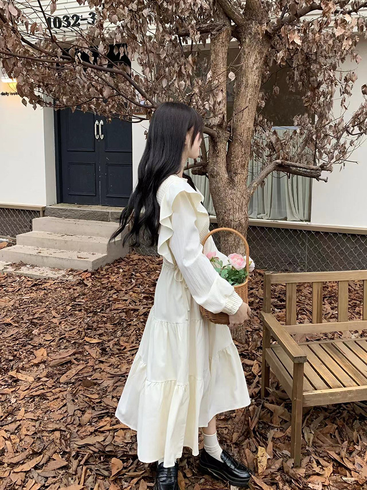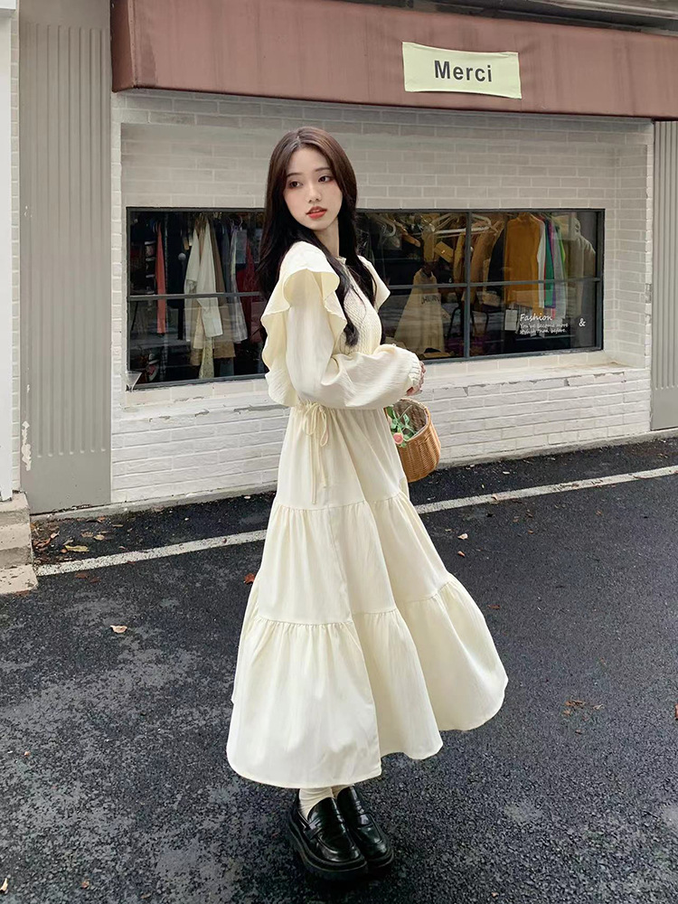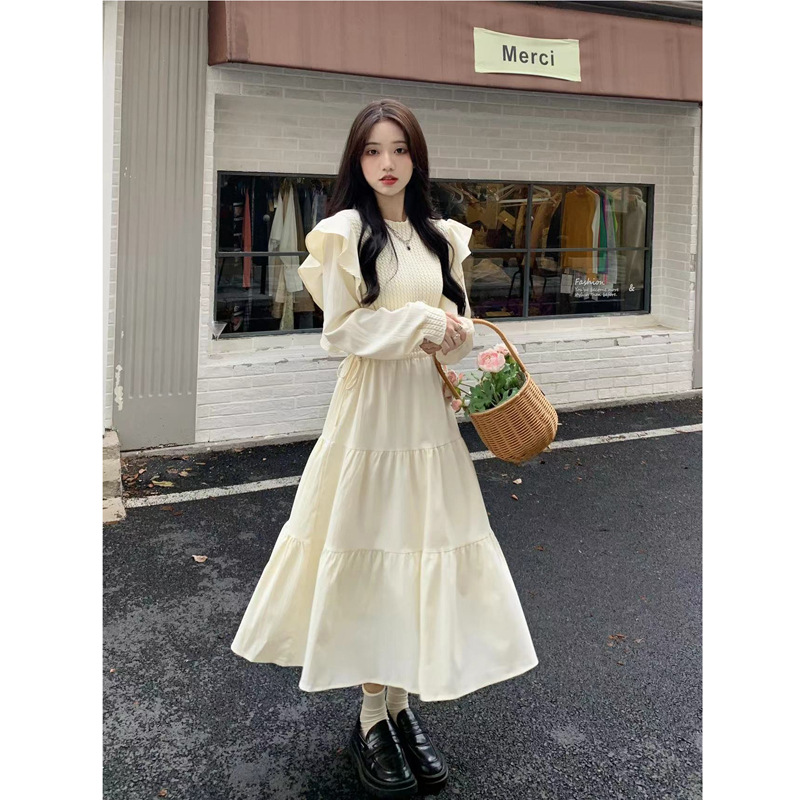 프랑스 요정 우아한 러플 원피스 봄 2023 새로운 부드러운 바람 우유 달콤한 허리 공주 미디 원피스스토어 가기