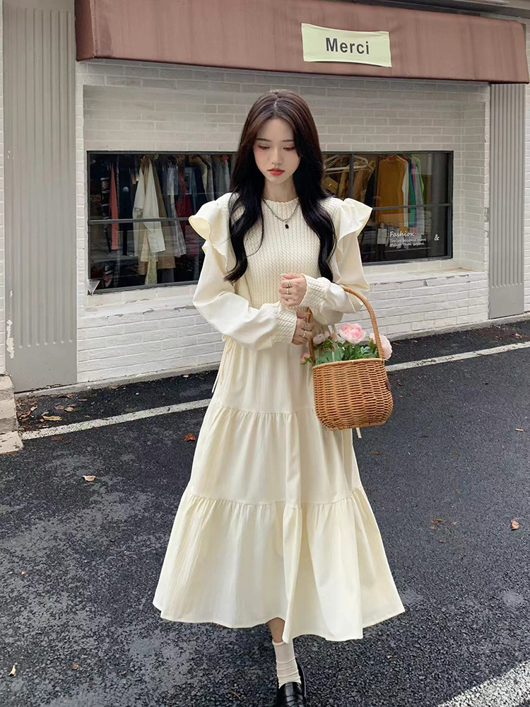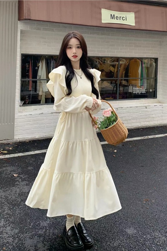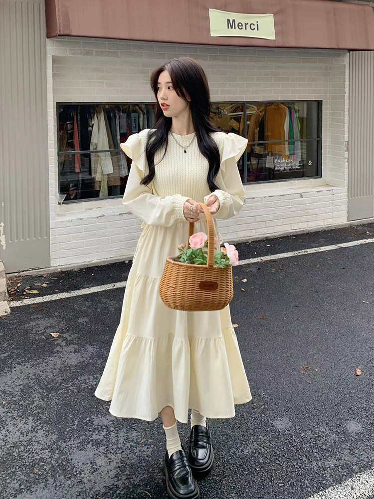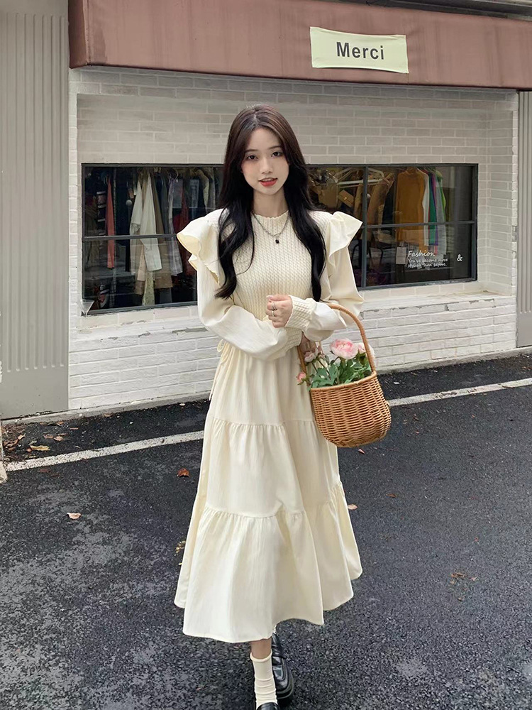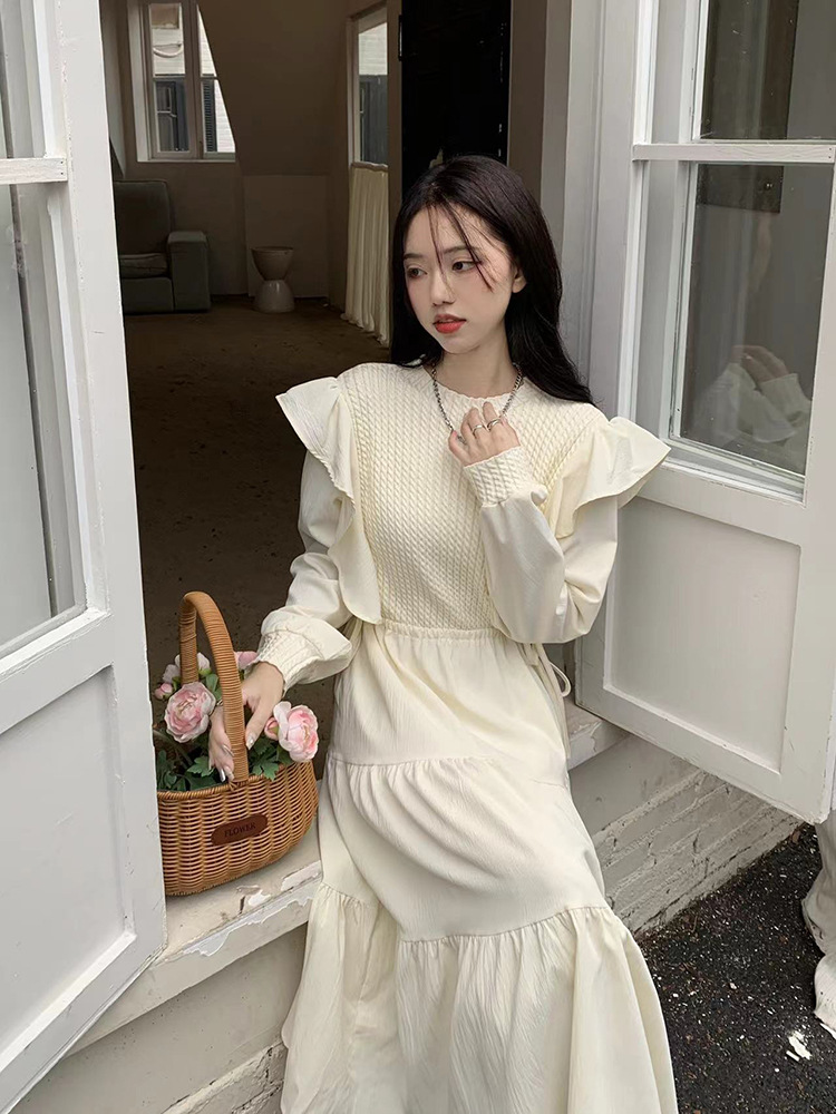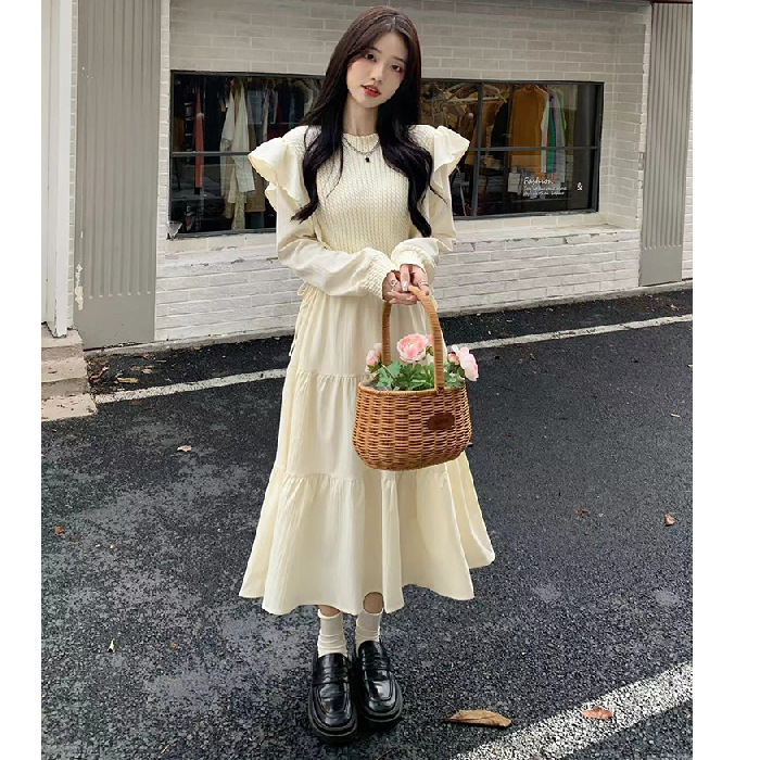 프랑스 요정 우아한 러플 원피스 봄 2023 새로운 부드러운 바람 우유 달콤한 허리 공주 미디 원피스스토어 가기