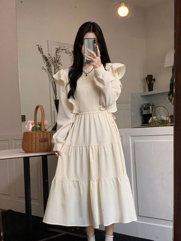 프랑스 요정 우아한 러플 원피스 봄 2023 새로운 부드러운 바람 우유 달콤한 허리 공주 미디 원피스
