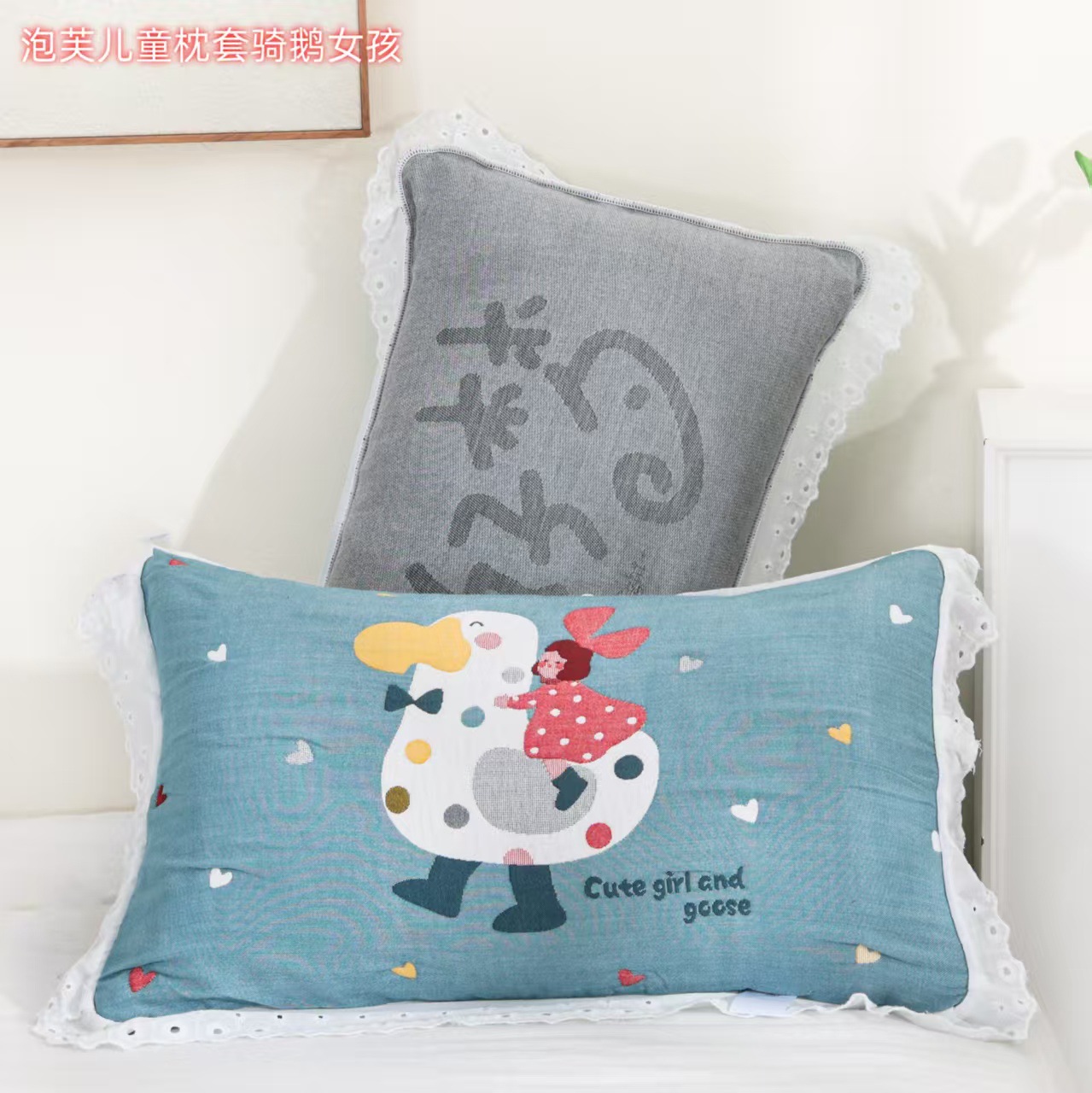 • 오리 소녀 레이스 어린이 베개 커버