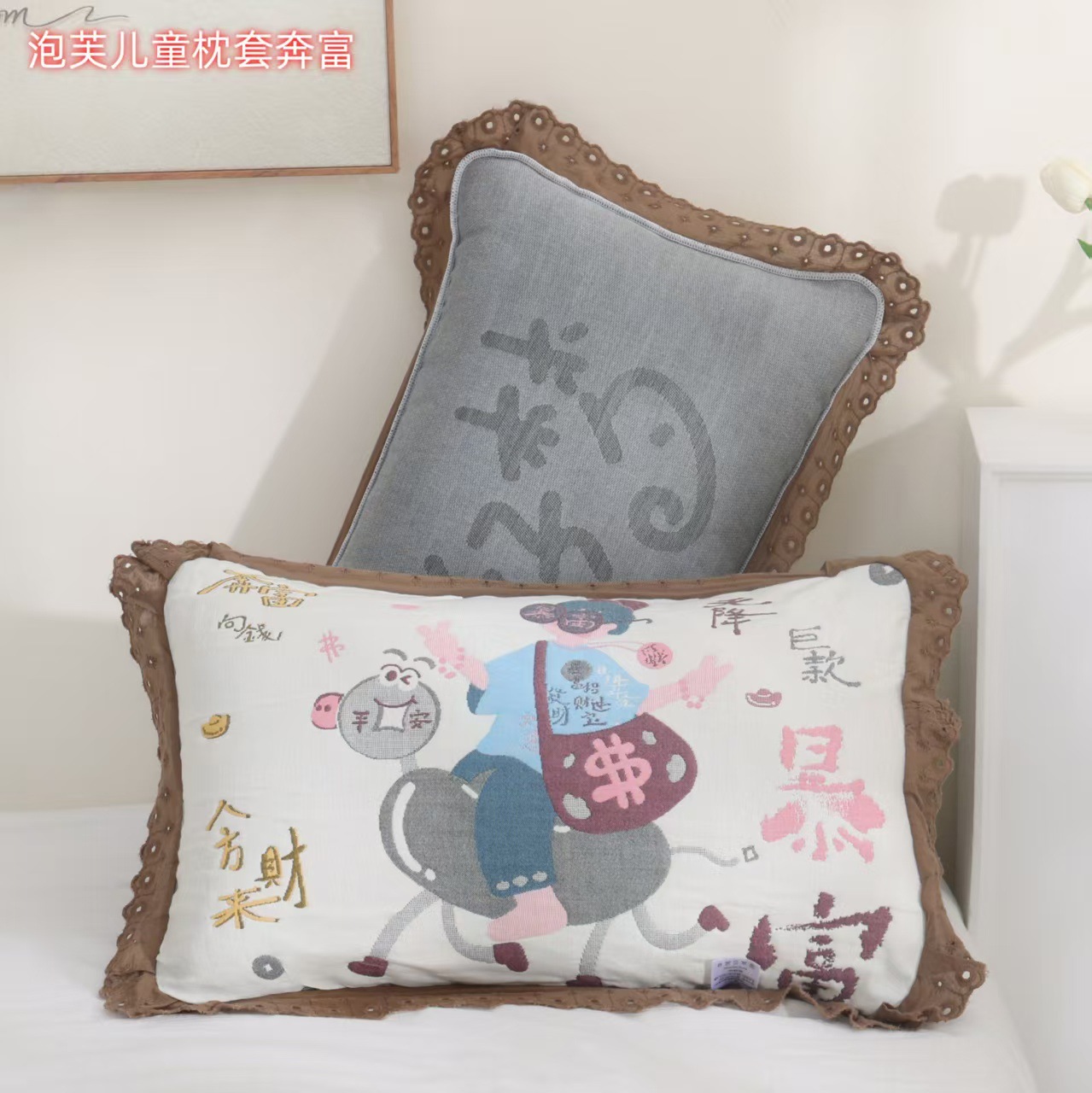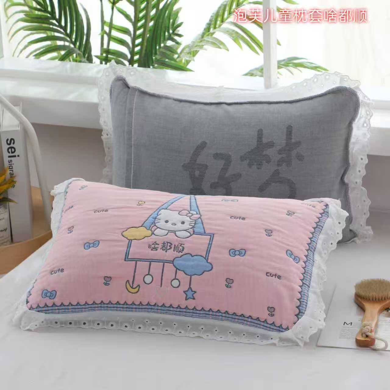 면 거즈 5 층 어린이 베갯잇 40 × 60 한 쌍의 만화 애니메이션 증가 기계 빨 사계절 유니버설