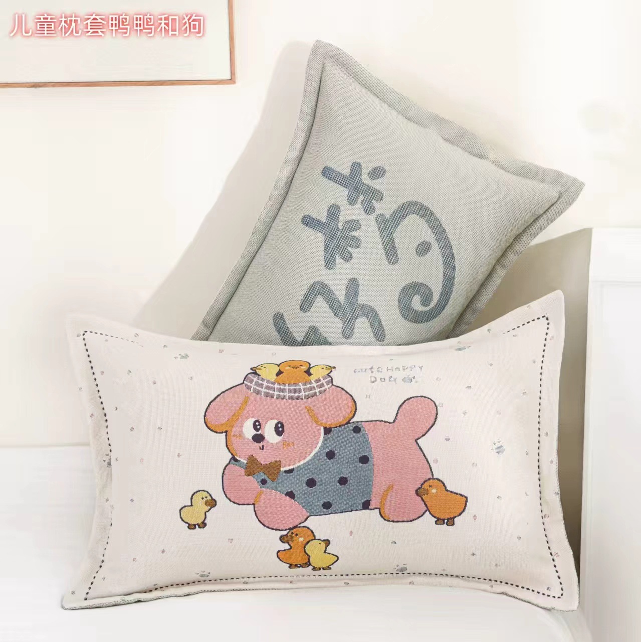 • 오리와 강아지 아동용 베개 커버