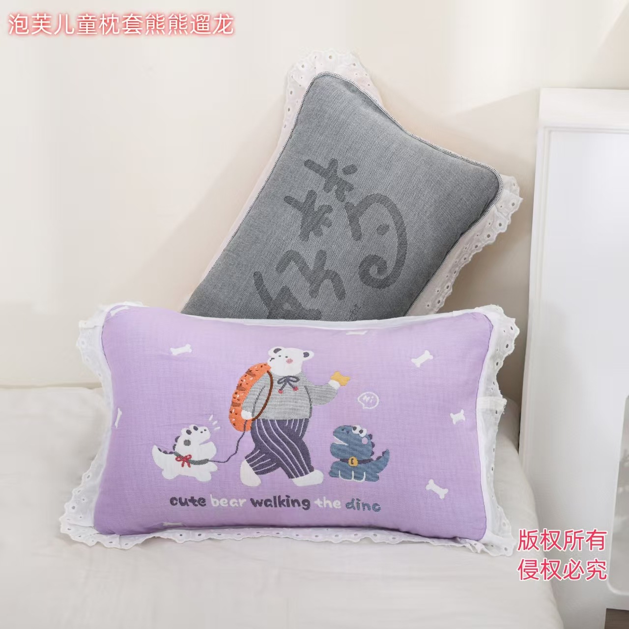 • 보라색 곰돌이 레이스 아동용 베개 커버