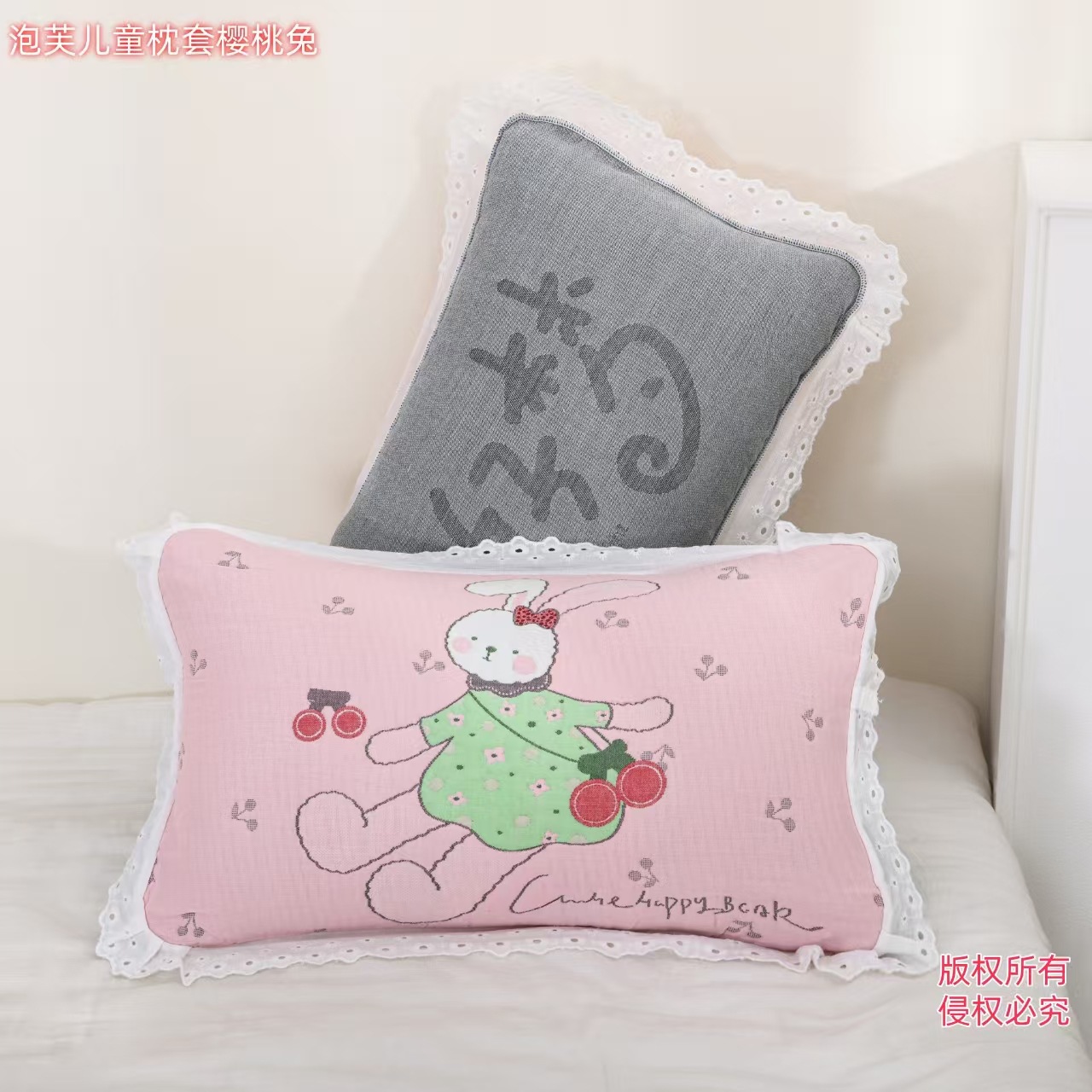 • 체리 토끼 레이스 아동용 베개 커버