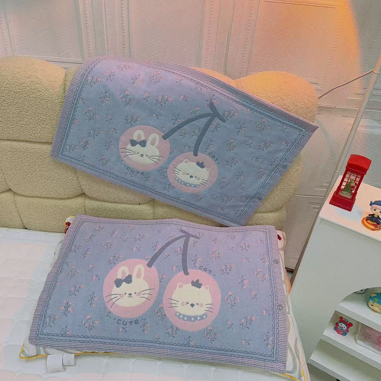 • 파란색 체리 고양이 스냅 단추 아동용 베개 커버