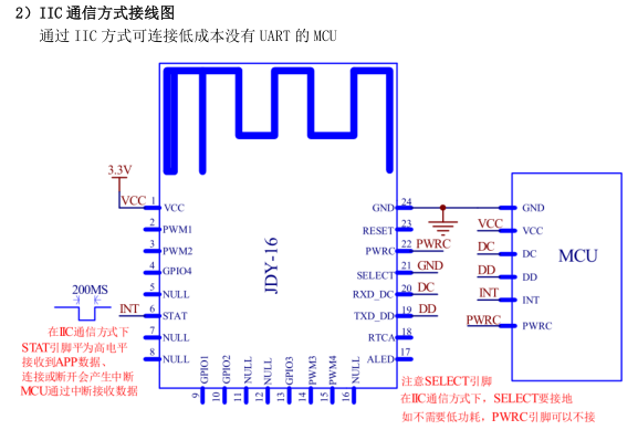 5:JDY-16支持UART或IIC通信接口,这样可以应用于更加低成本的MUC应用。