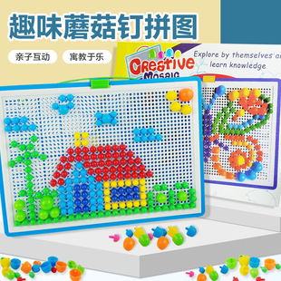 大号DIY套装296粒蘑菇钉拼图玩具儿童diy手工拼插插珠创意积木