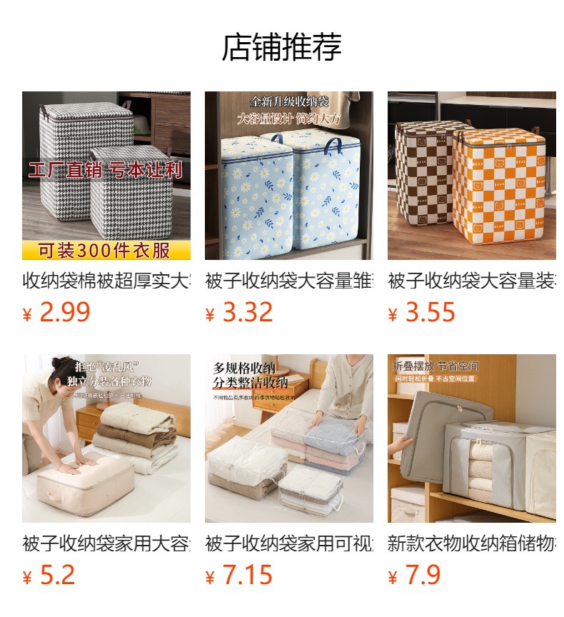 옷을 위한 수납 가방, 만화 구름 시각적 이불 수납 가방, 대용량 가정용 휴대용 이불 수납스토어 가기