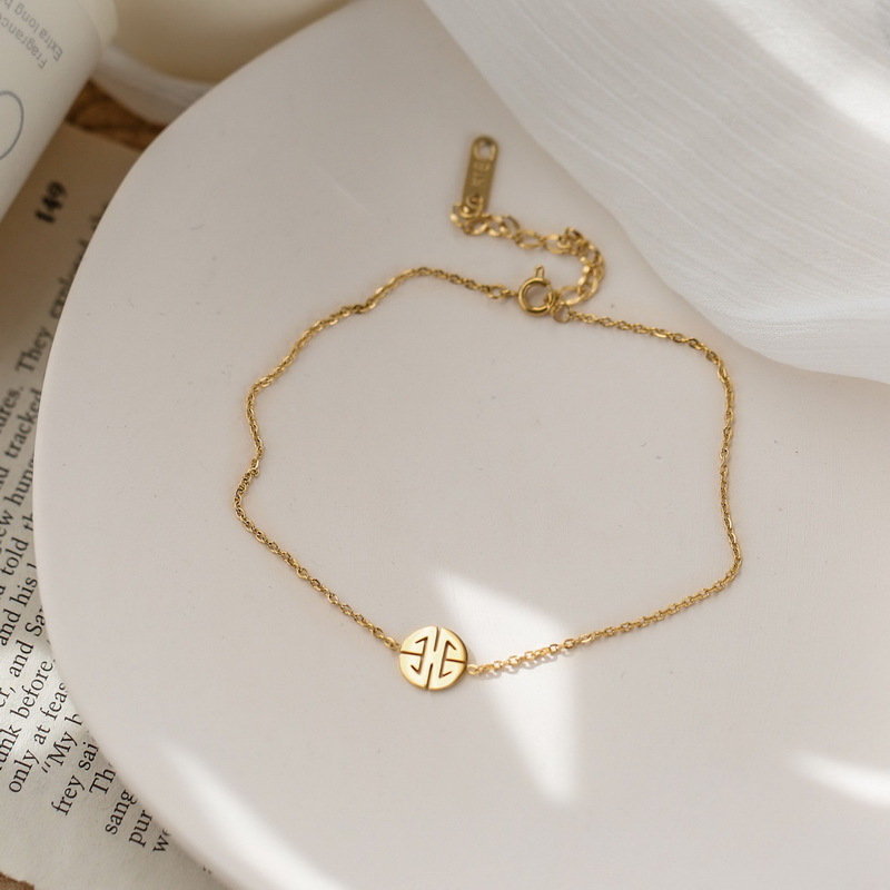 18K 골드 샤오후 브랜드 발찌 여성용 한국식 심플 라운드 폴리싱 티타늄 스틸 컬러 프리 쥬얼리