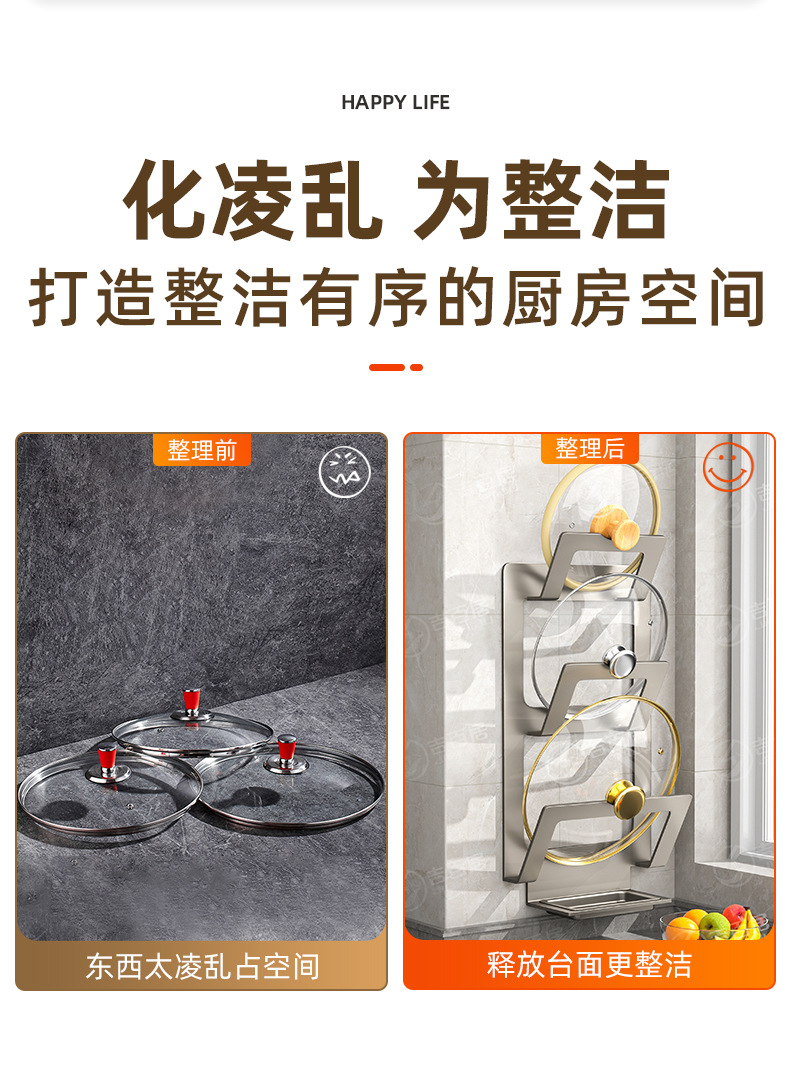 제조업체는 펀치 없는 냄비 뚜껑 선반, 도마 선반, 벽걸이형 가정용 조리대 도마 보관 브래킷, 도마 선반을 공급합니다.스토어 가기