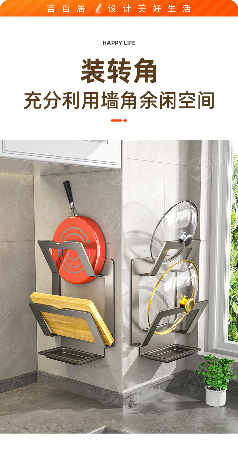 제조업체는 펀치 없는 냄비 뚜껑 선반, 도마 선반, 벽걸이형 가정용 조리대 도마 보관 브래킷, 도마 선반을 공급합니다.