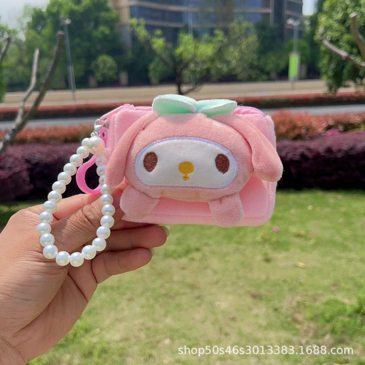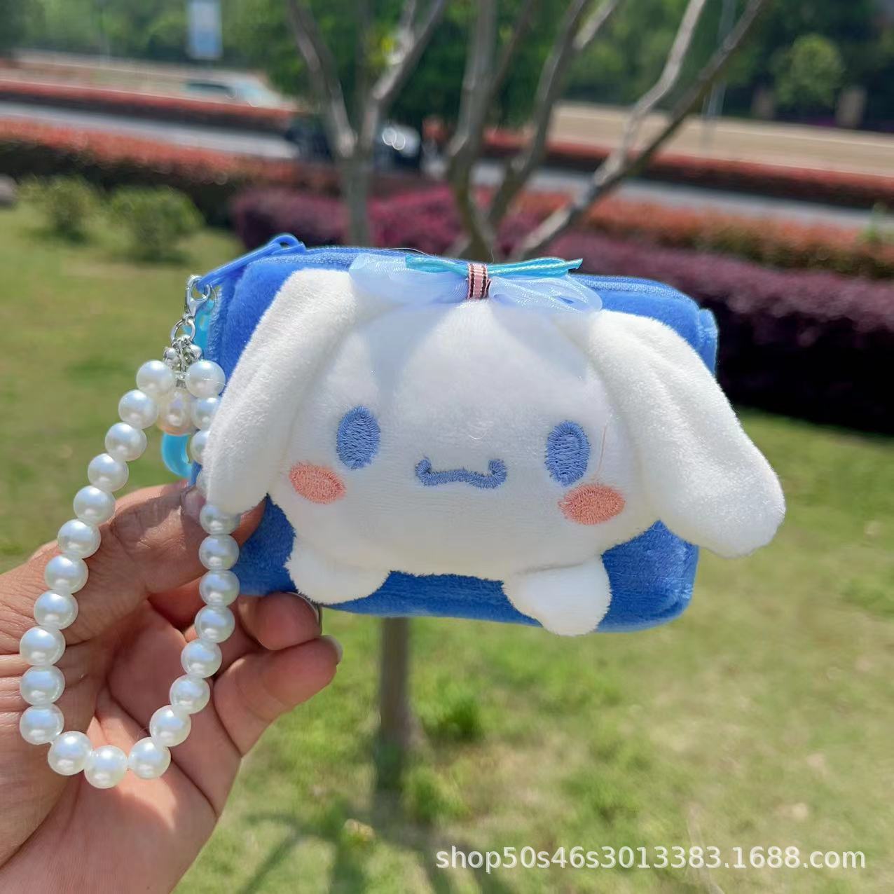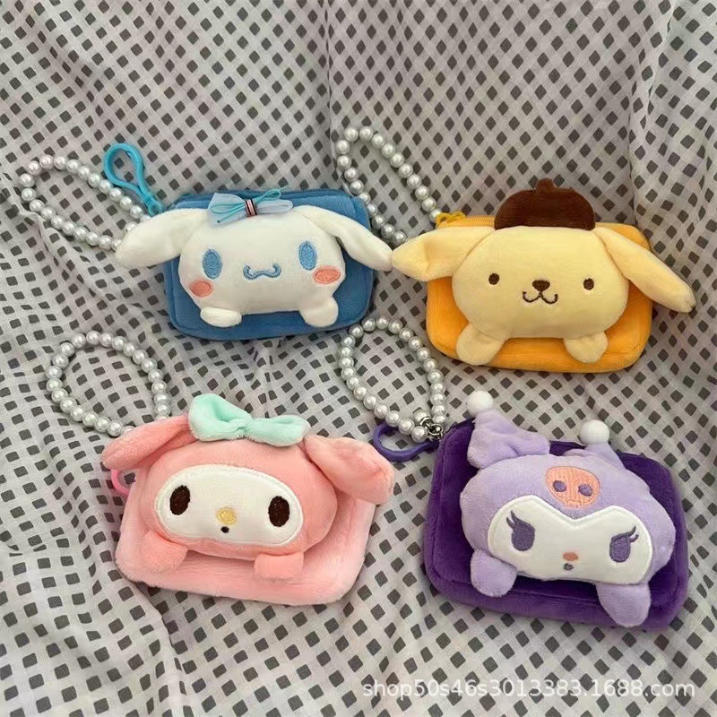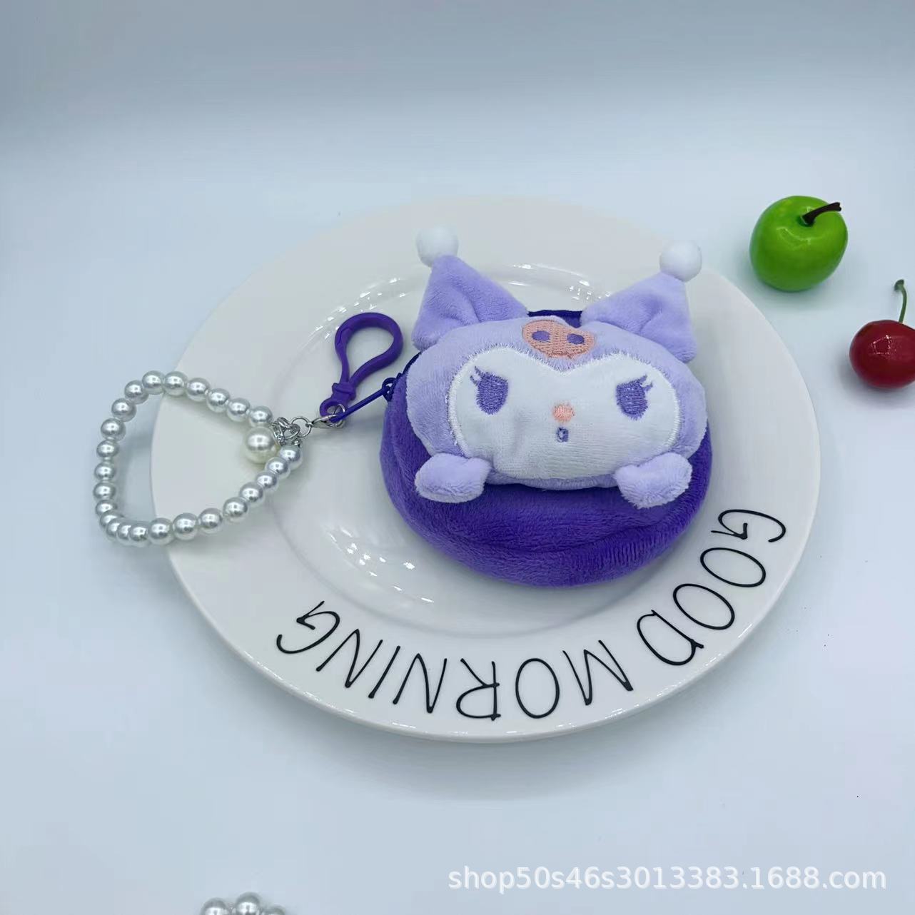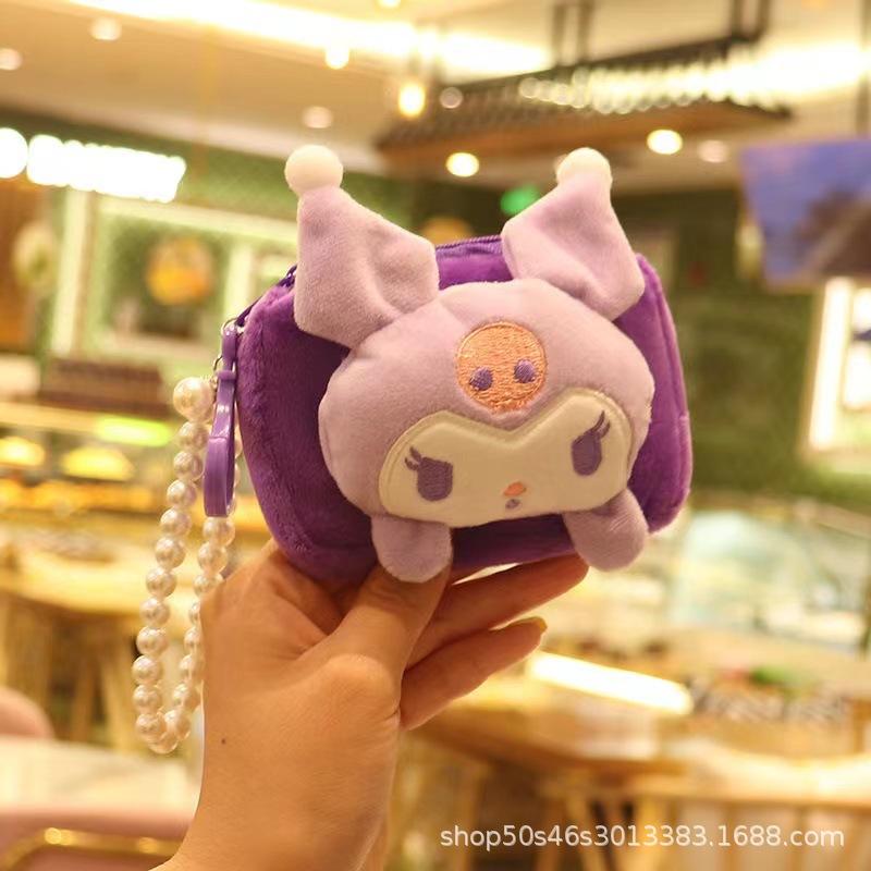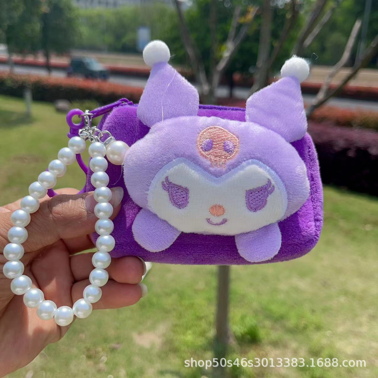 Sanrio ins 동전 지갑 쿠로미 플러시 가방 펜던트 카드 가방 진주 끈 여성용 작은 지갑 동전 가방