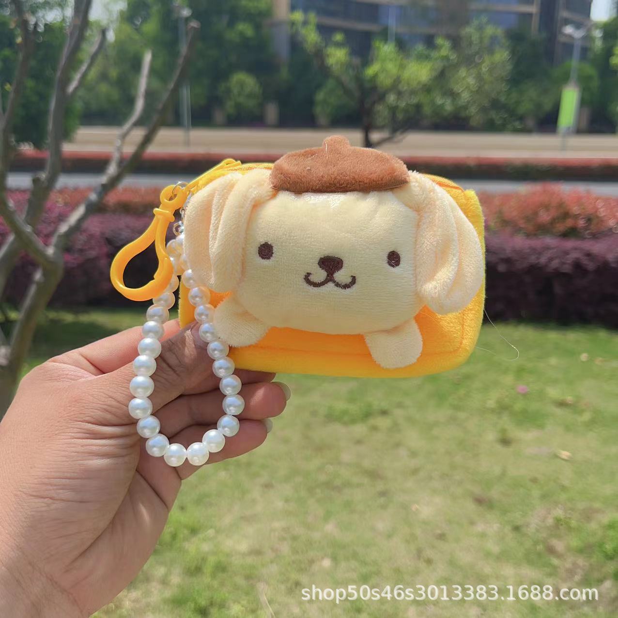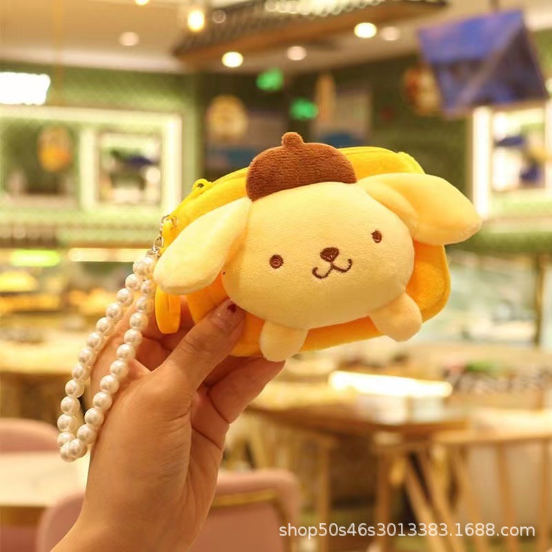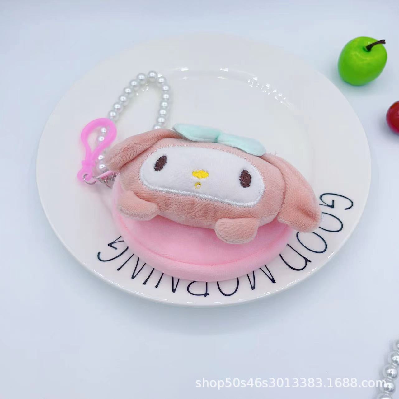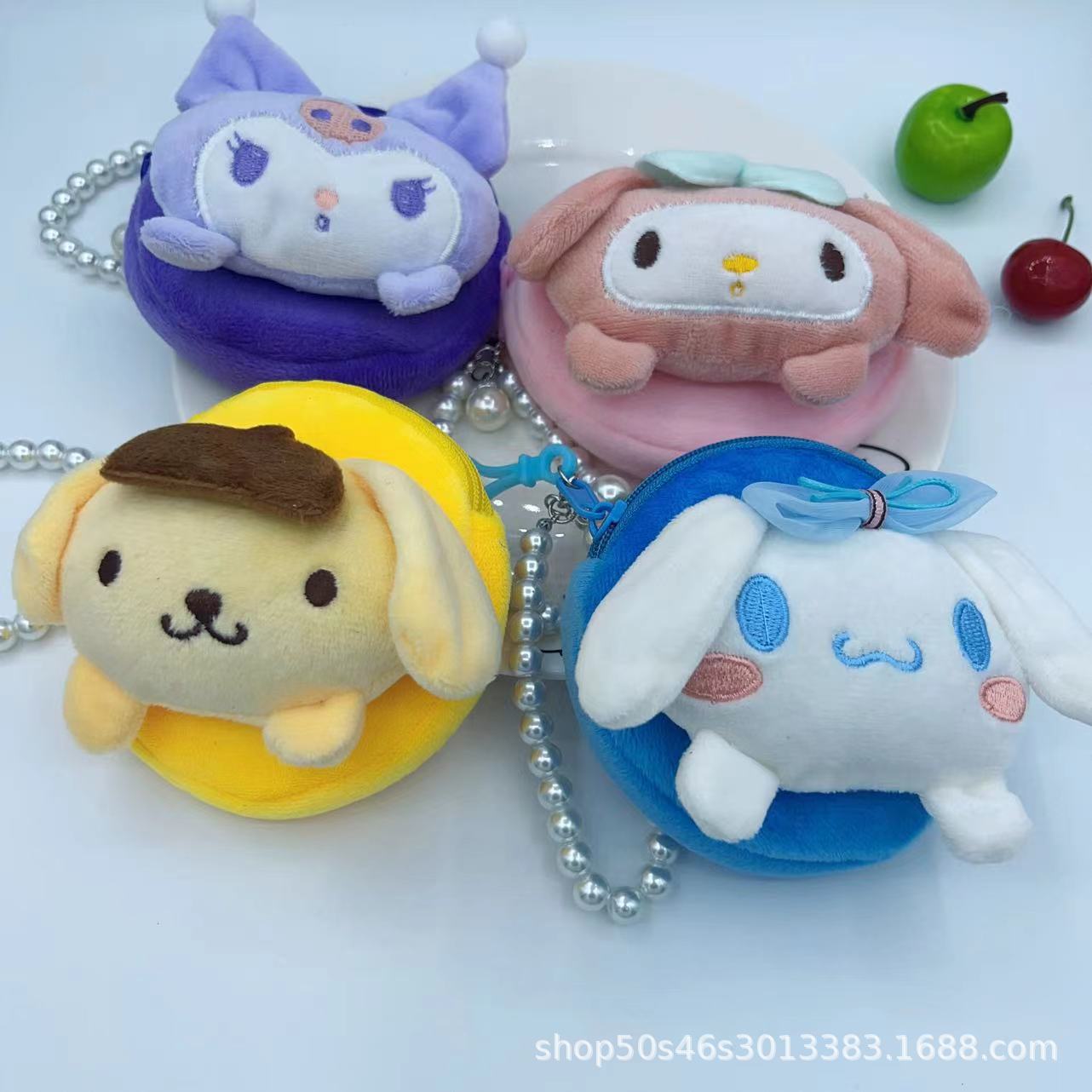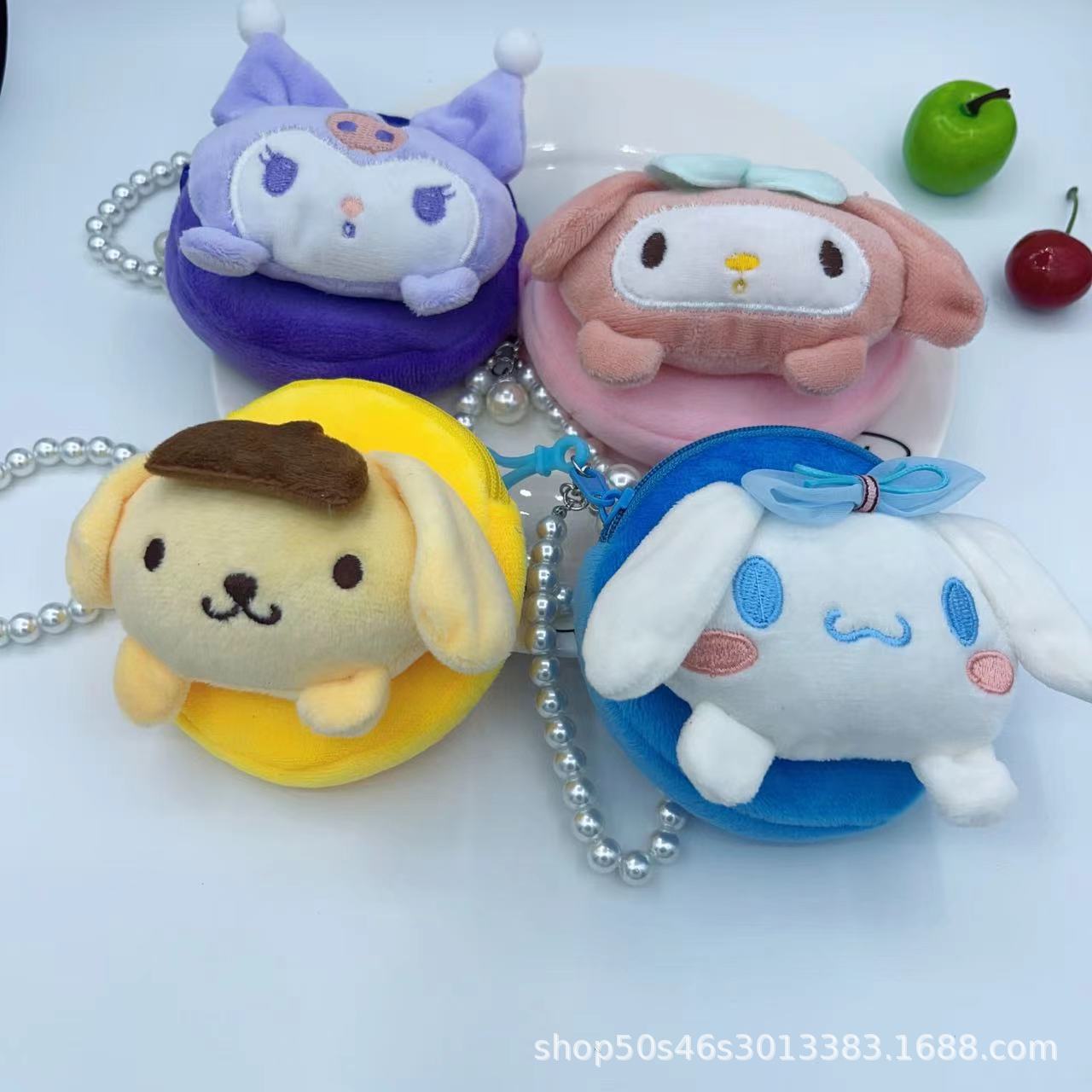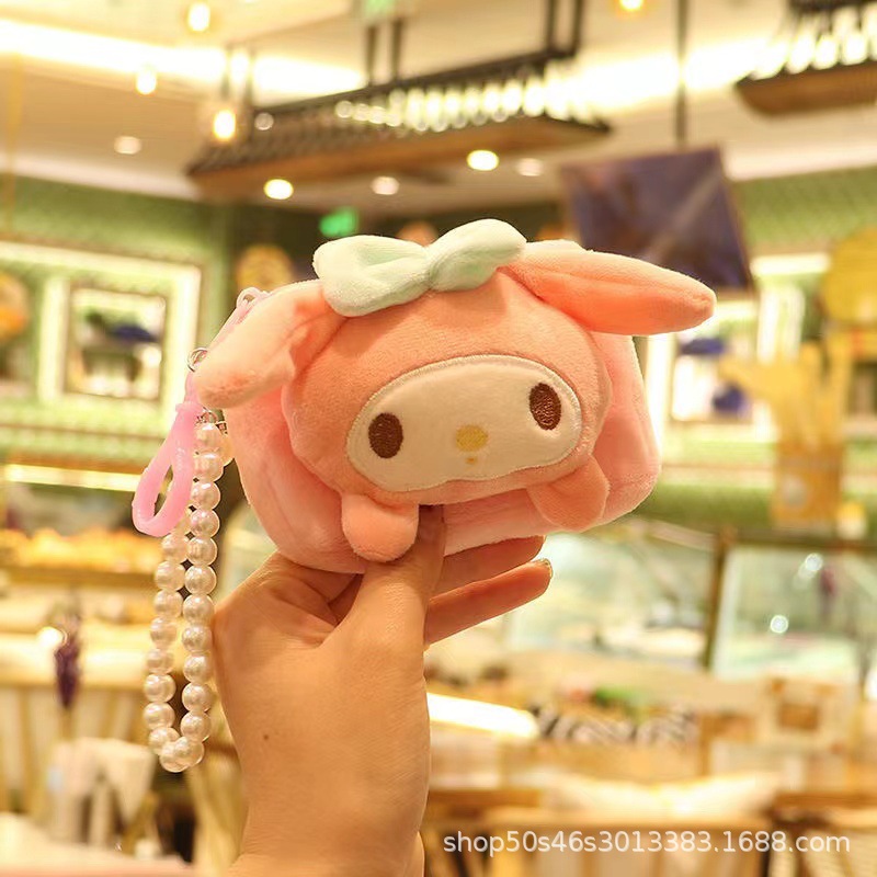 Sanrio ins 동전 지갑 쿠로미 플러시 가방 펜던트 카드 가방 진주 끈 여성용 작은 지갑 동전 가방