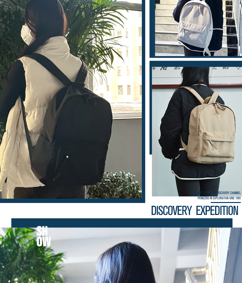 배낭 제조업체의 트렌디한 남성과 여성 커플의 같은 스타일의 학교 가방, 작은 신선한 단색 학생 쿨 실크 코튼 학교 가방스토어 가기