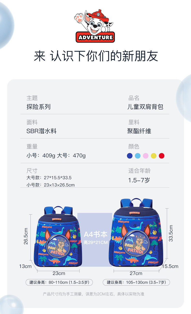 • 23 × 13 × 26.5cm (스몰 사이즈 2-4 세) 견인 로프 포함