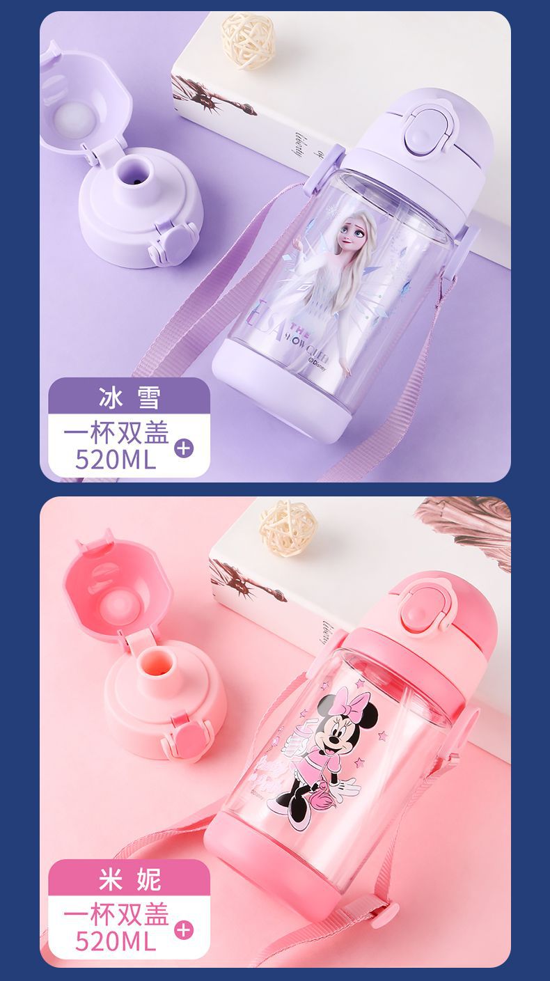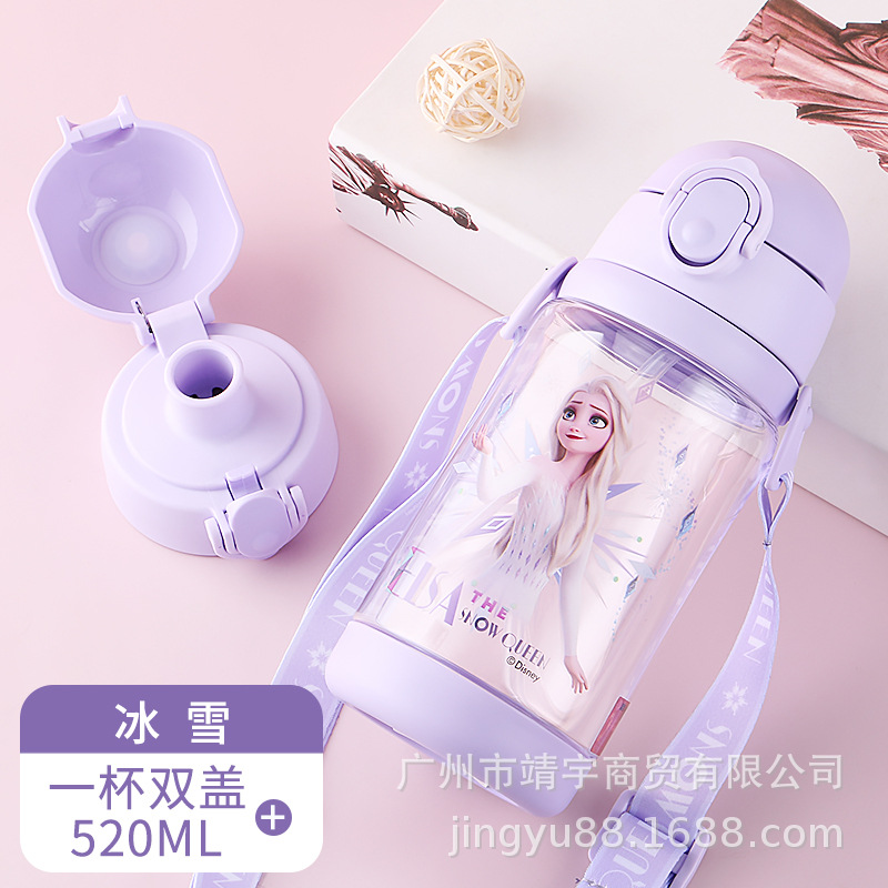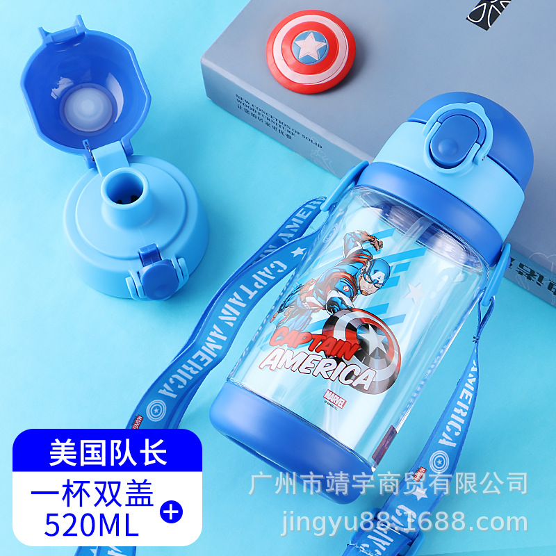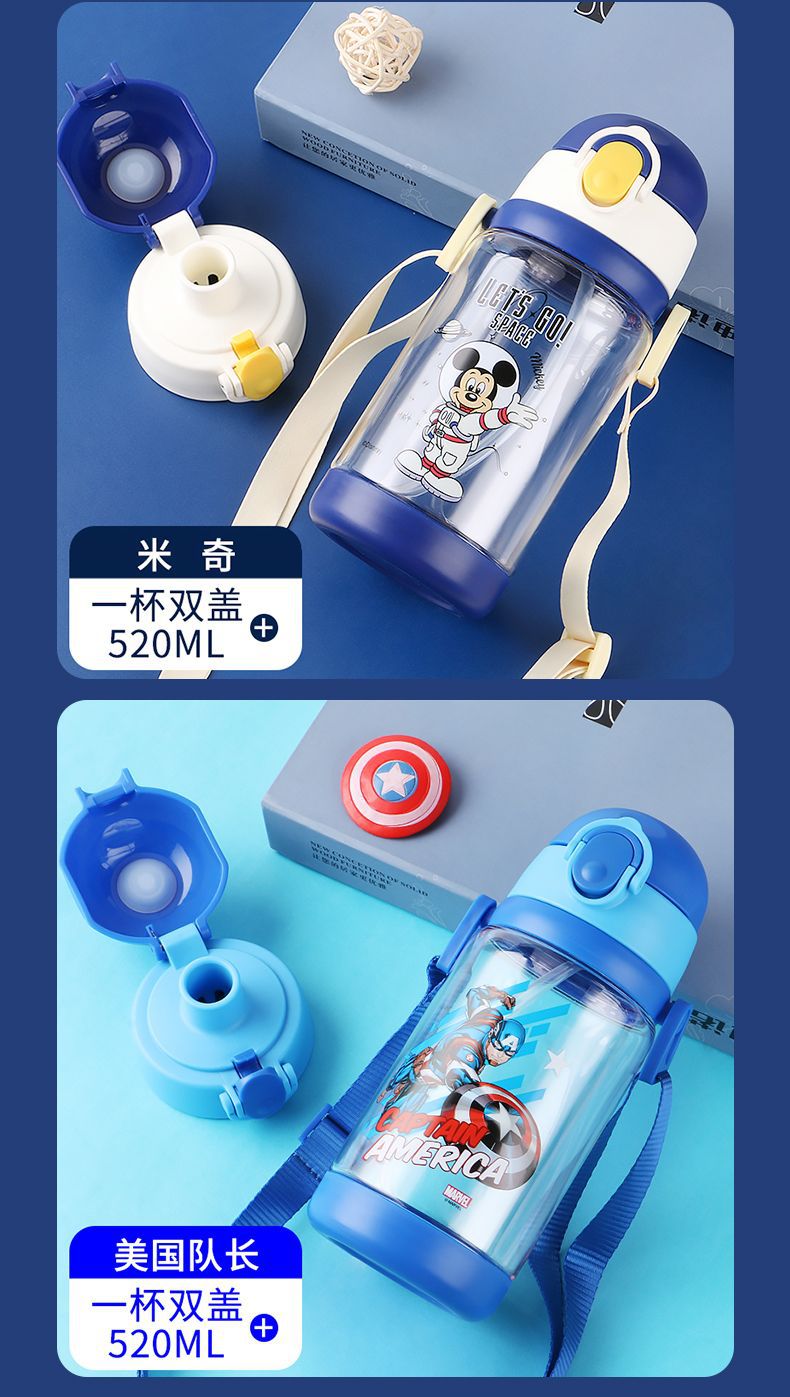디즈니 어린이 플라스틱 컵 마블 빨대 스트레이트 음주 이중 사용 주전자 스트랩 휴대용 학생 여름 아기 물 컵