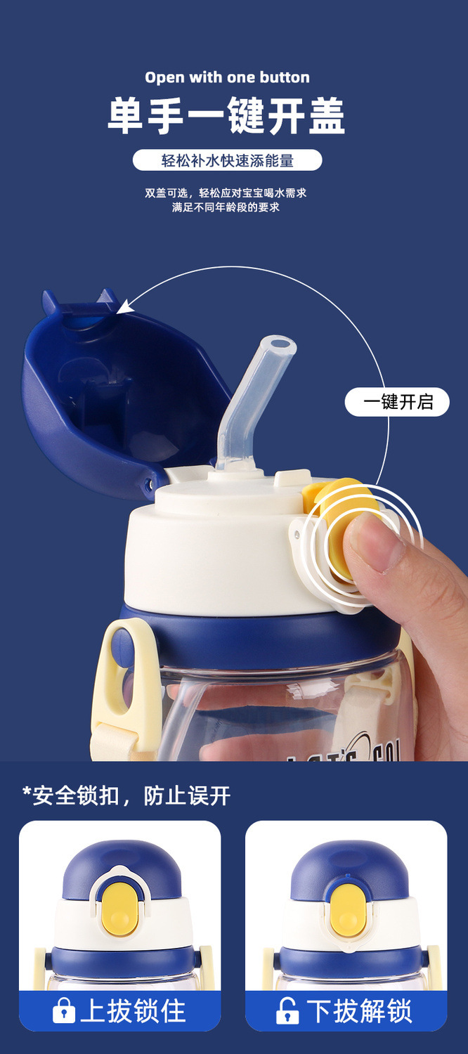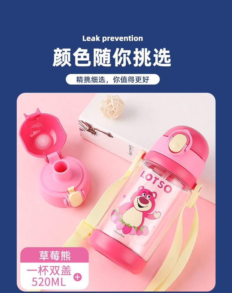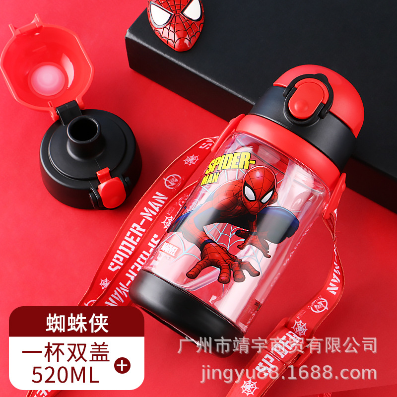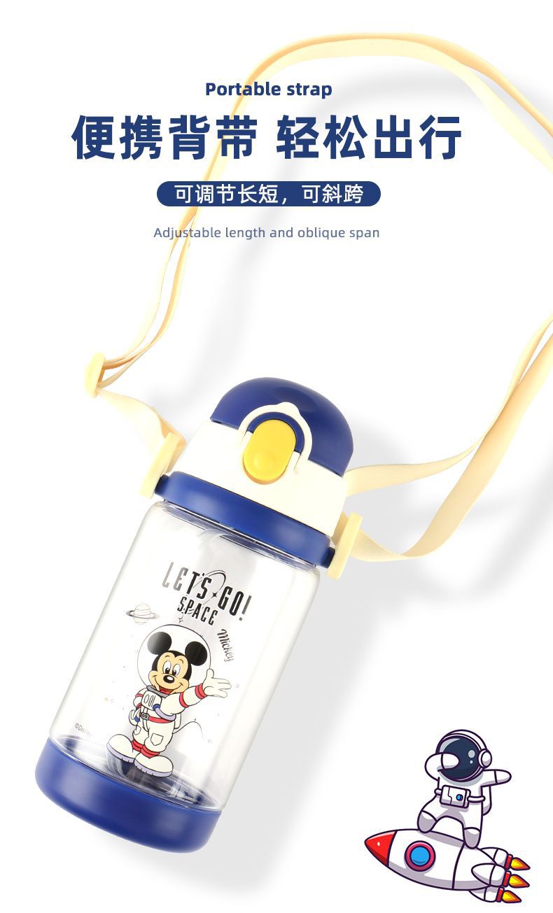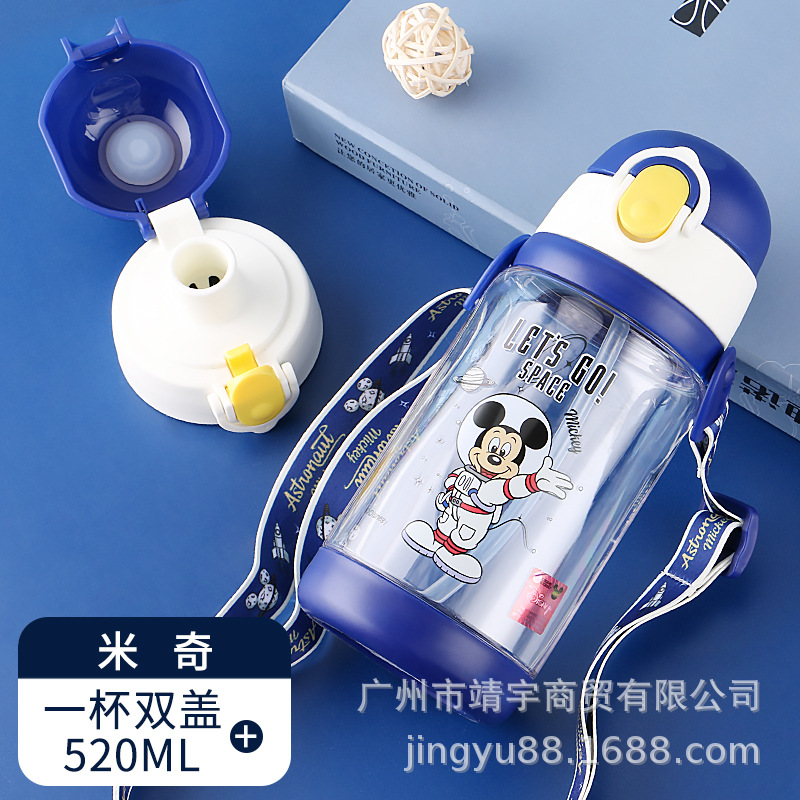 디즈니 어린이 플라스틱 컵 마블 빨대 스트레이트 음주 이중 사용 주전자 스트랩 휴대용 학생 여름 아기 물 컵