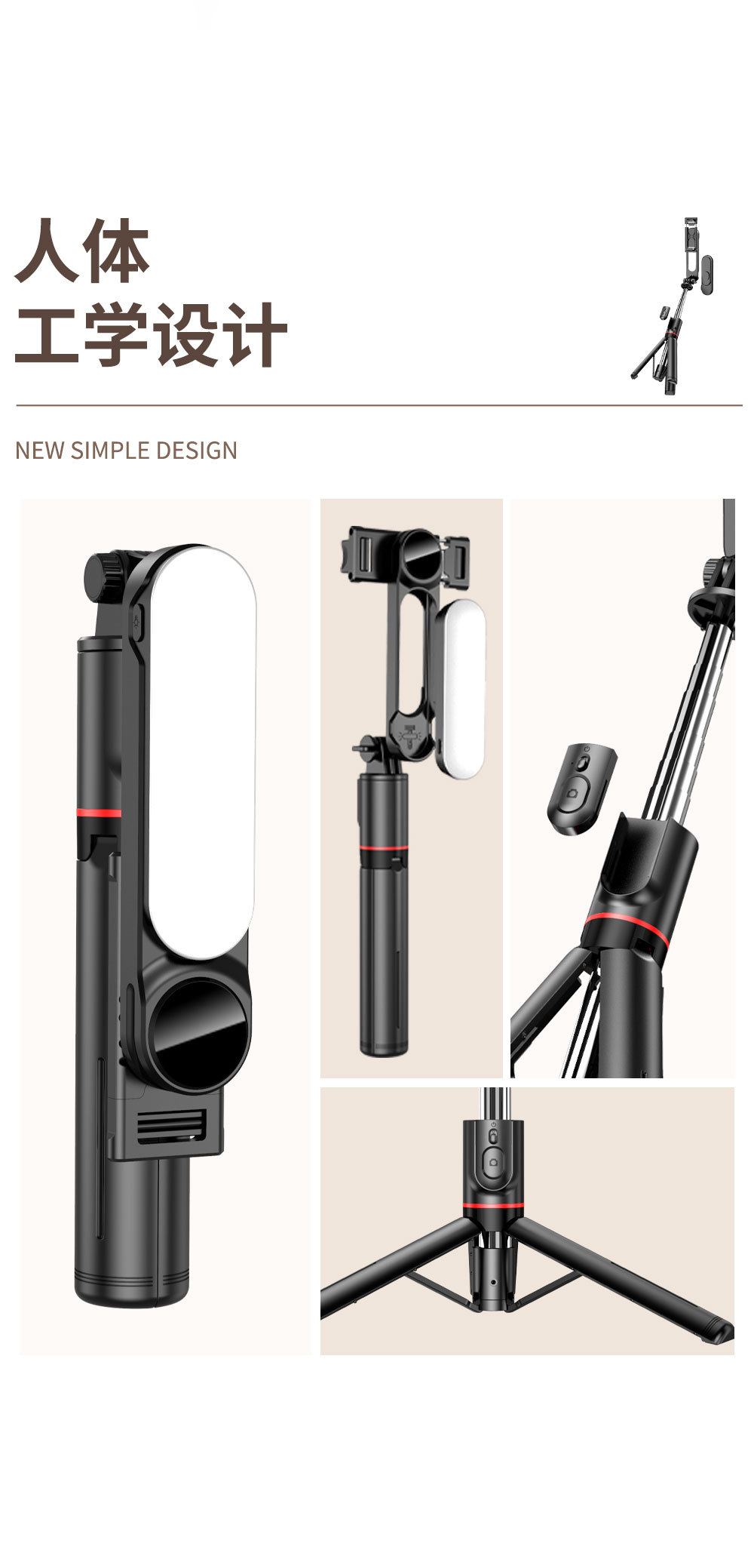 L15 可拆卸补光灯加固三脚架自拍杆(1110mm)