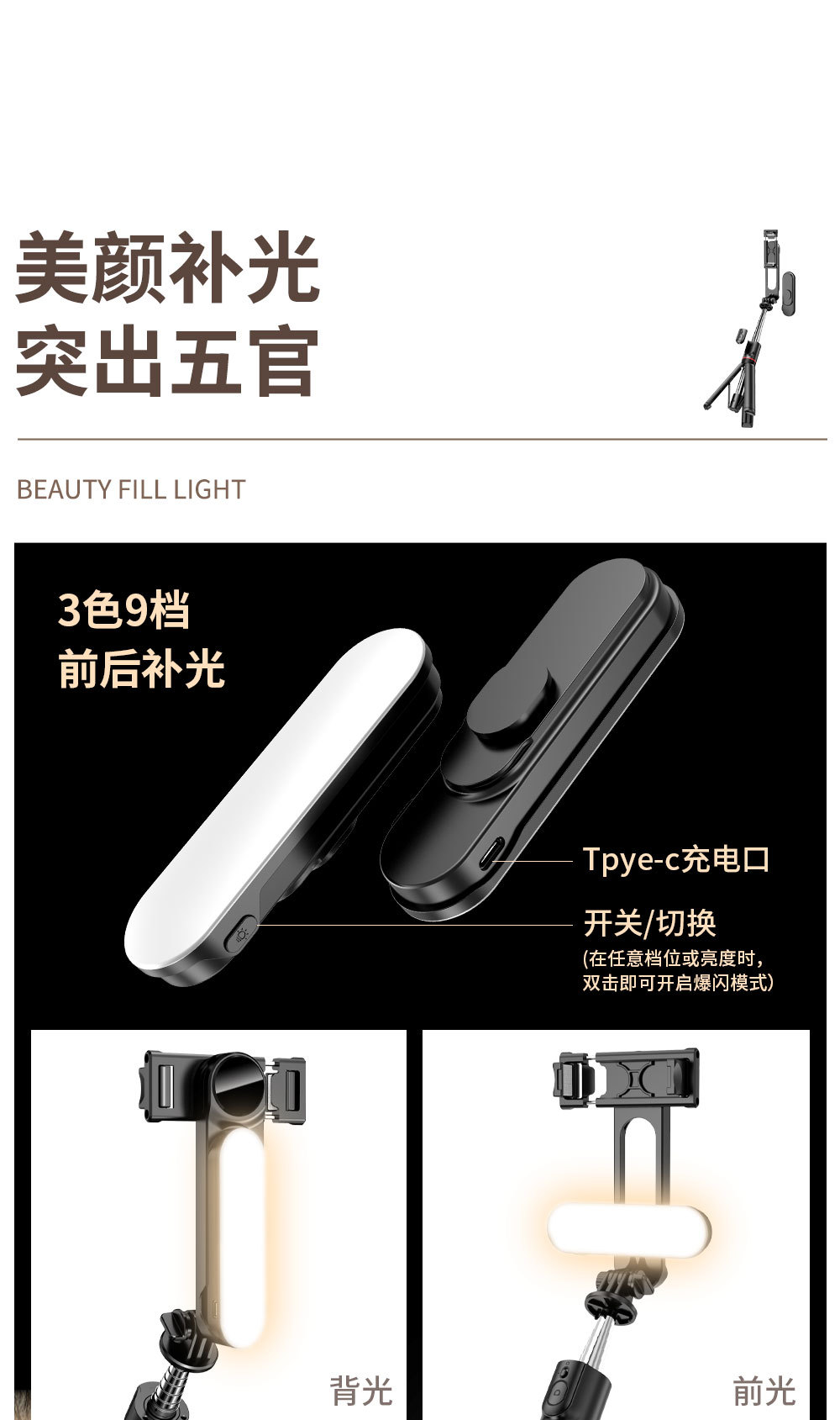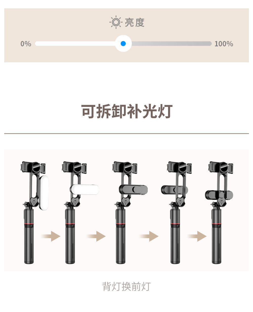 L15 Removable fill light stable selfie stick tripod (1110mm)