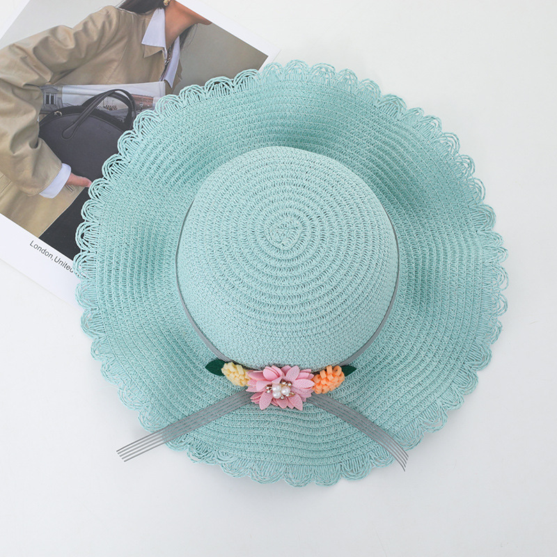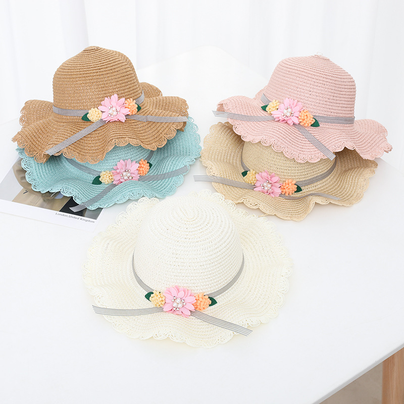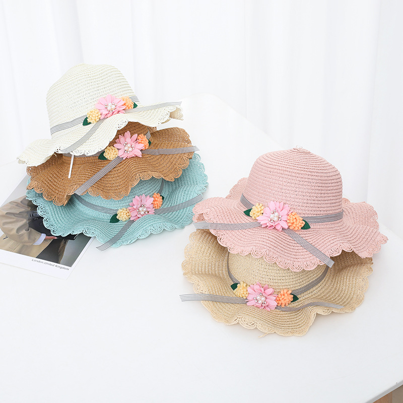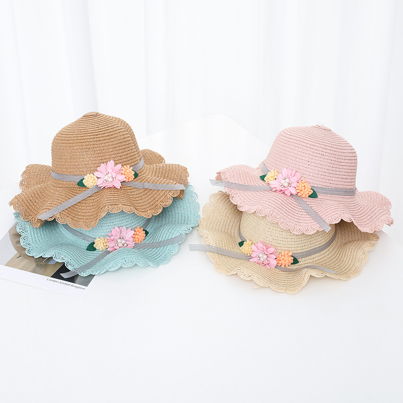 어린이 모자 여성용 자외선 차단제 한국 공주 해변 그늘 밀짚 모자 여름 아기 어부 모자 여아 태양 모자