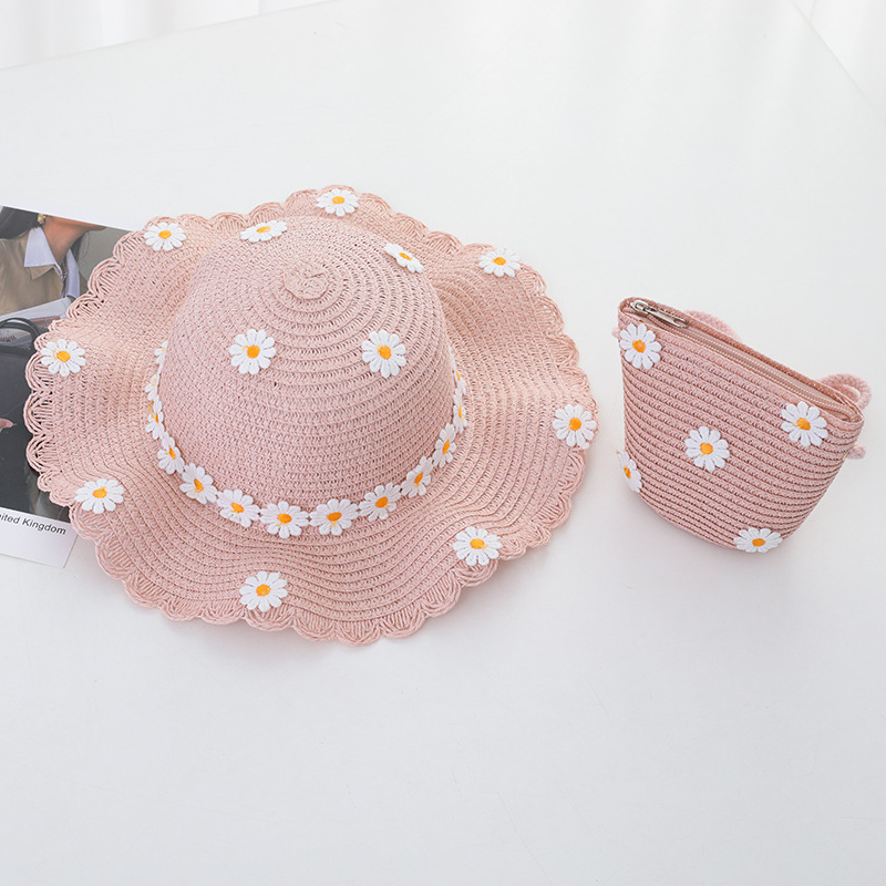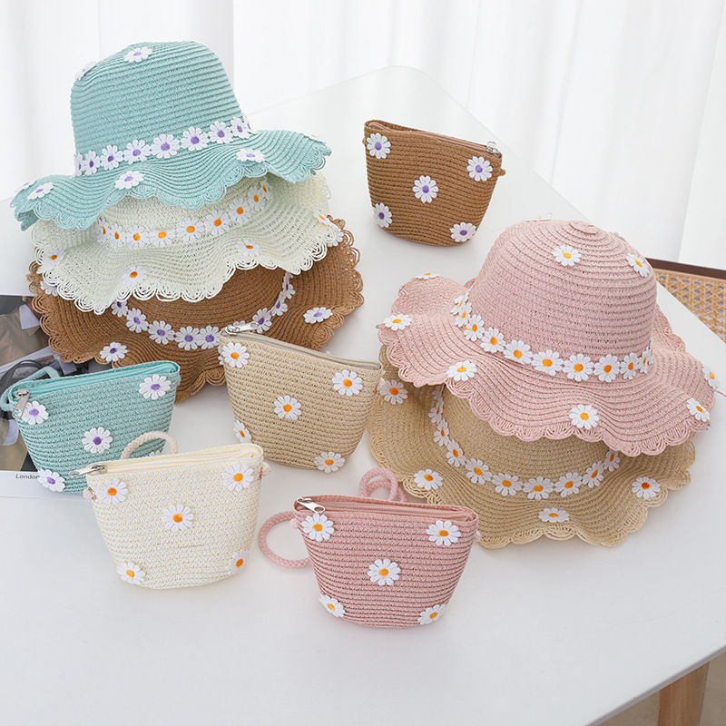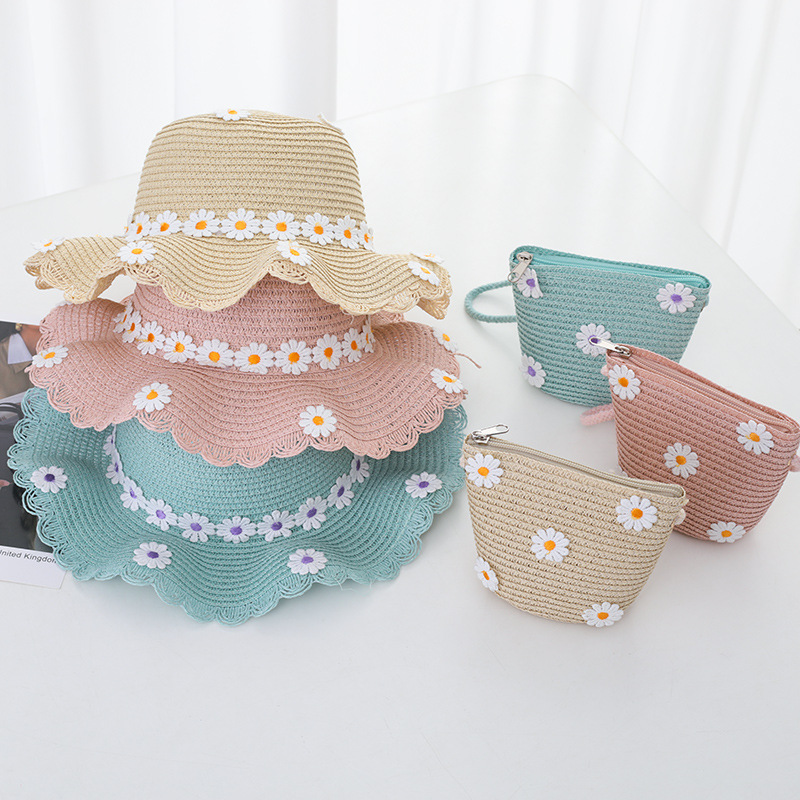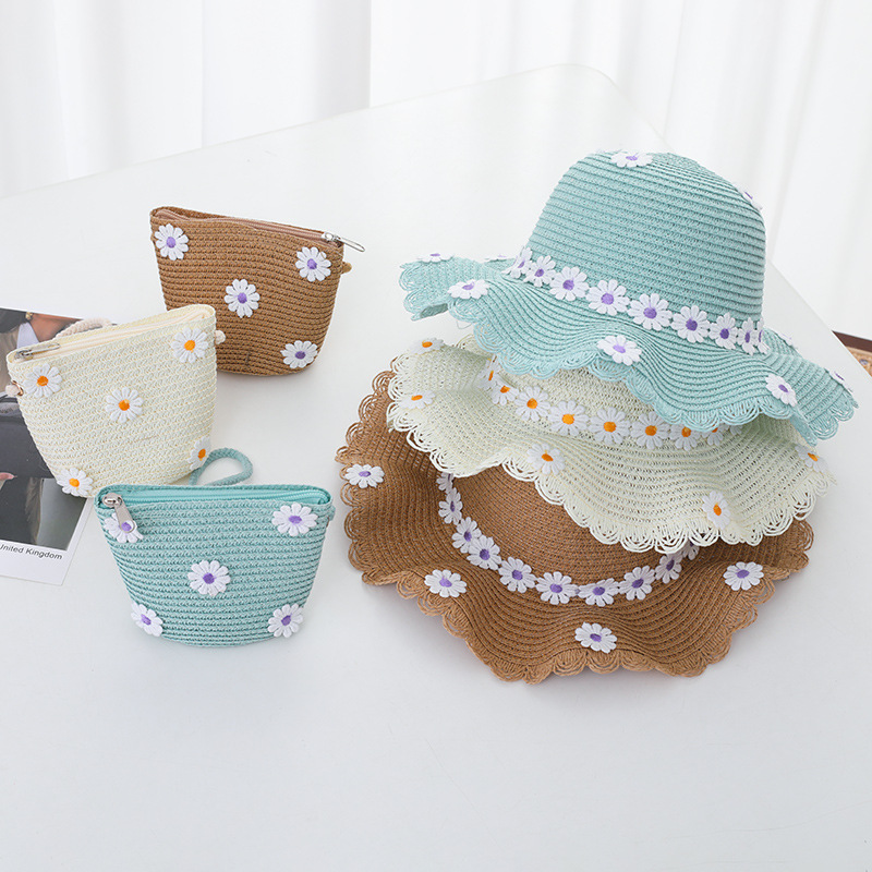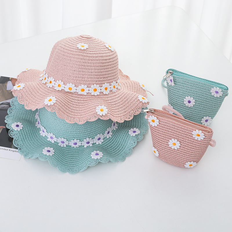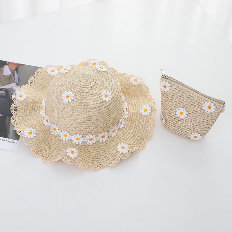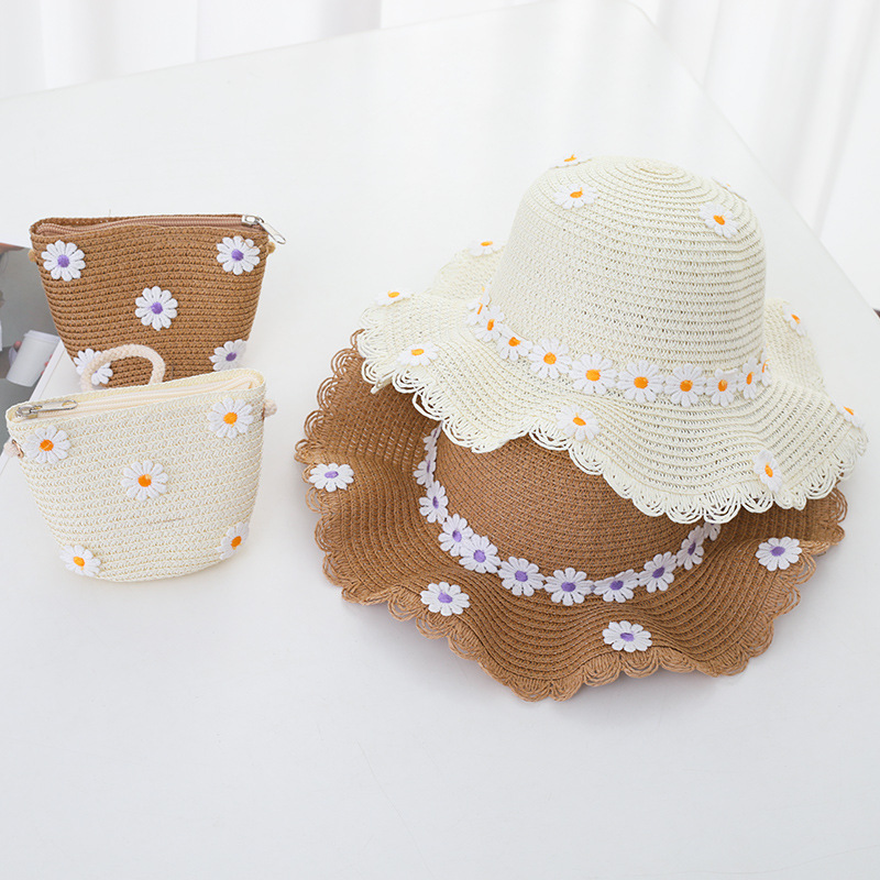 여자의 여름 자외선 차단제 공주 비치 모자 학생 모자 부모-자식 태양 모자 소녀의 밀짚 모자 태양 모자 단어 가방 세트