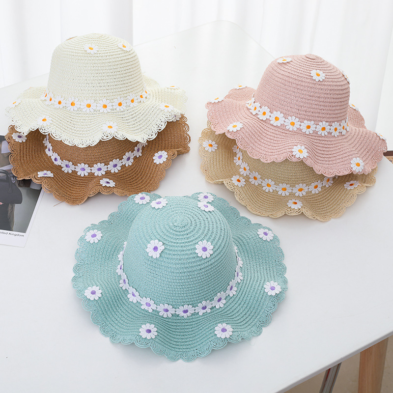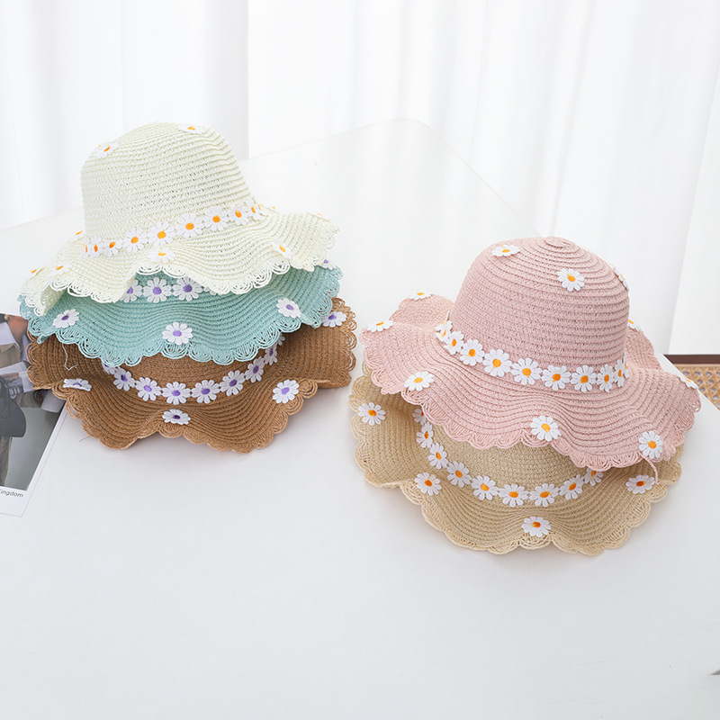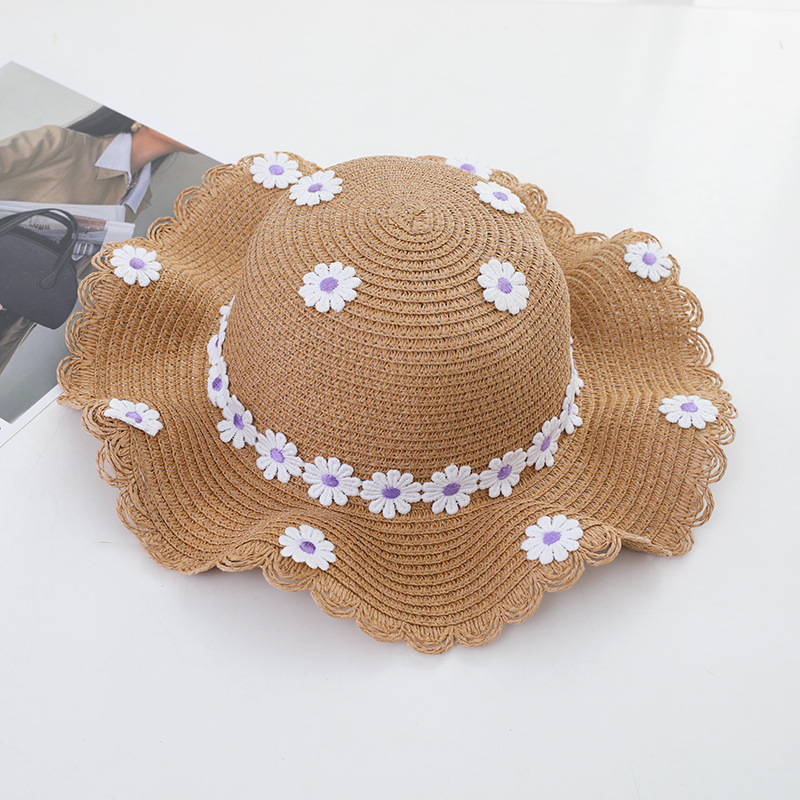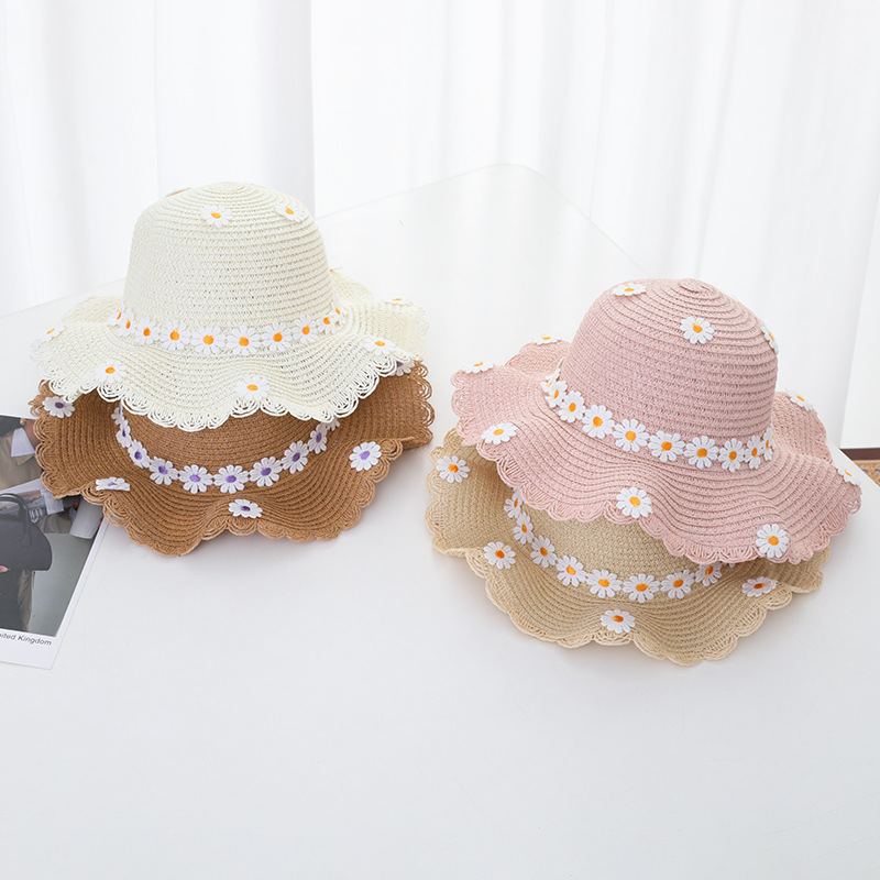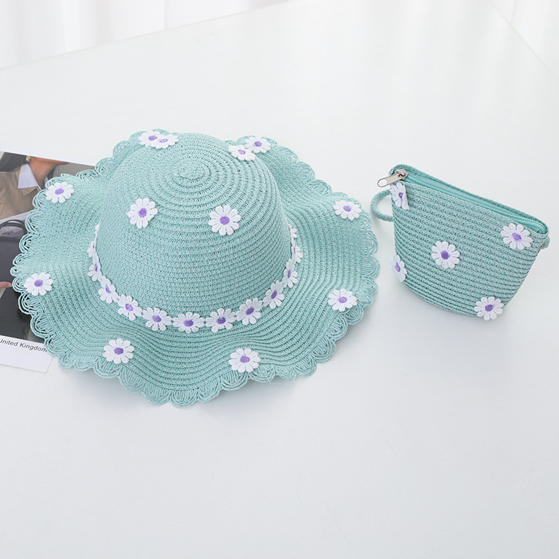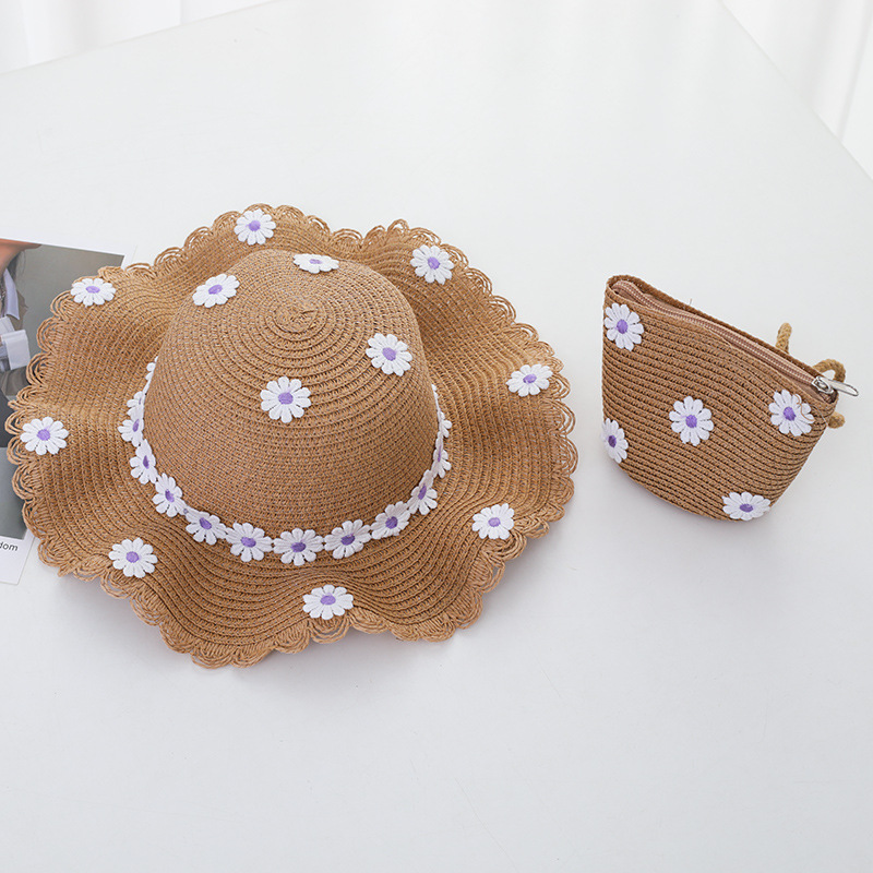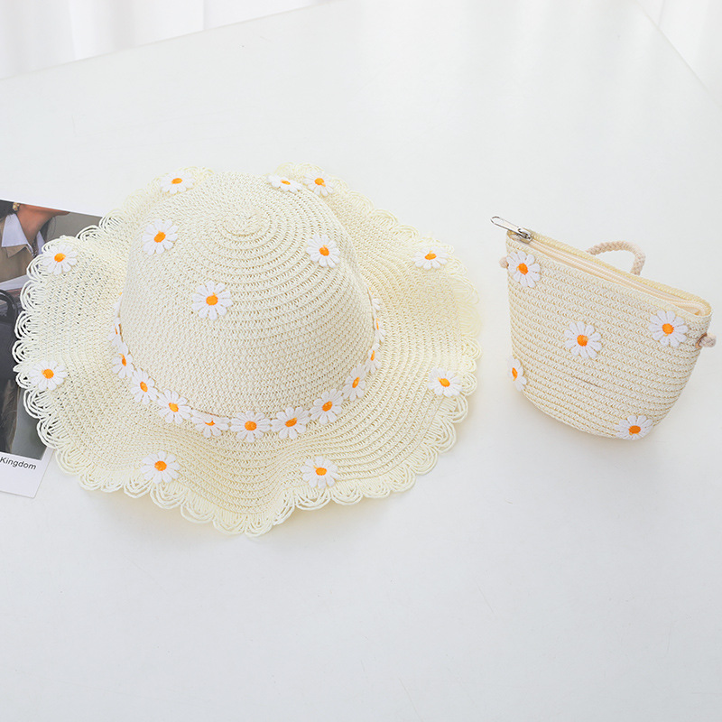 여자의 여름 자외선 차단제 공주 비치 모자 학생 모자 부모-자식 태양 모자 소녀의 밀짚 모자 태양 모자 단어 가방 세트