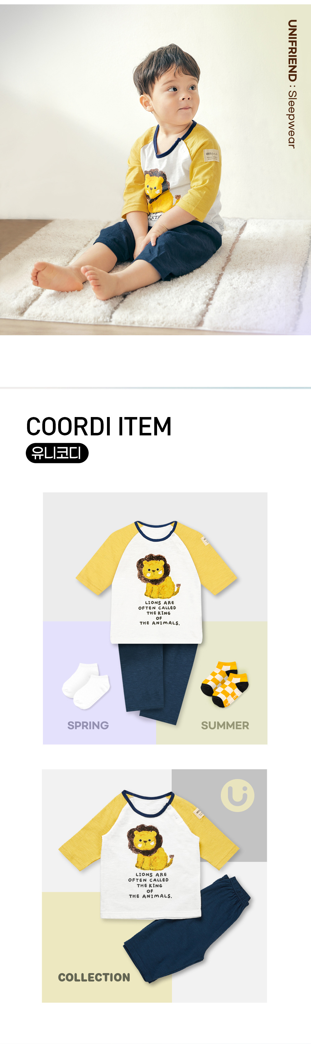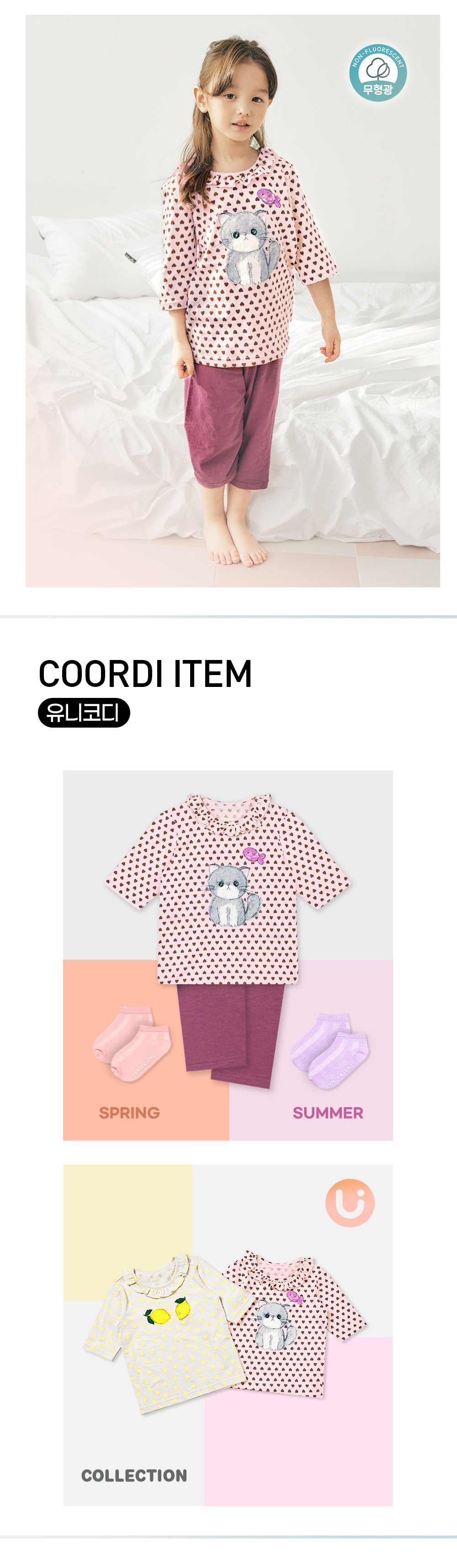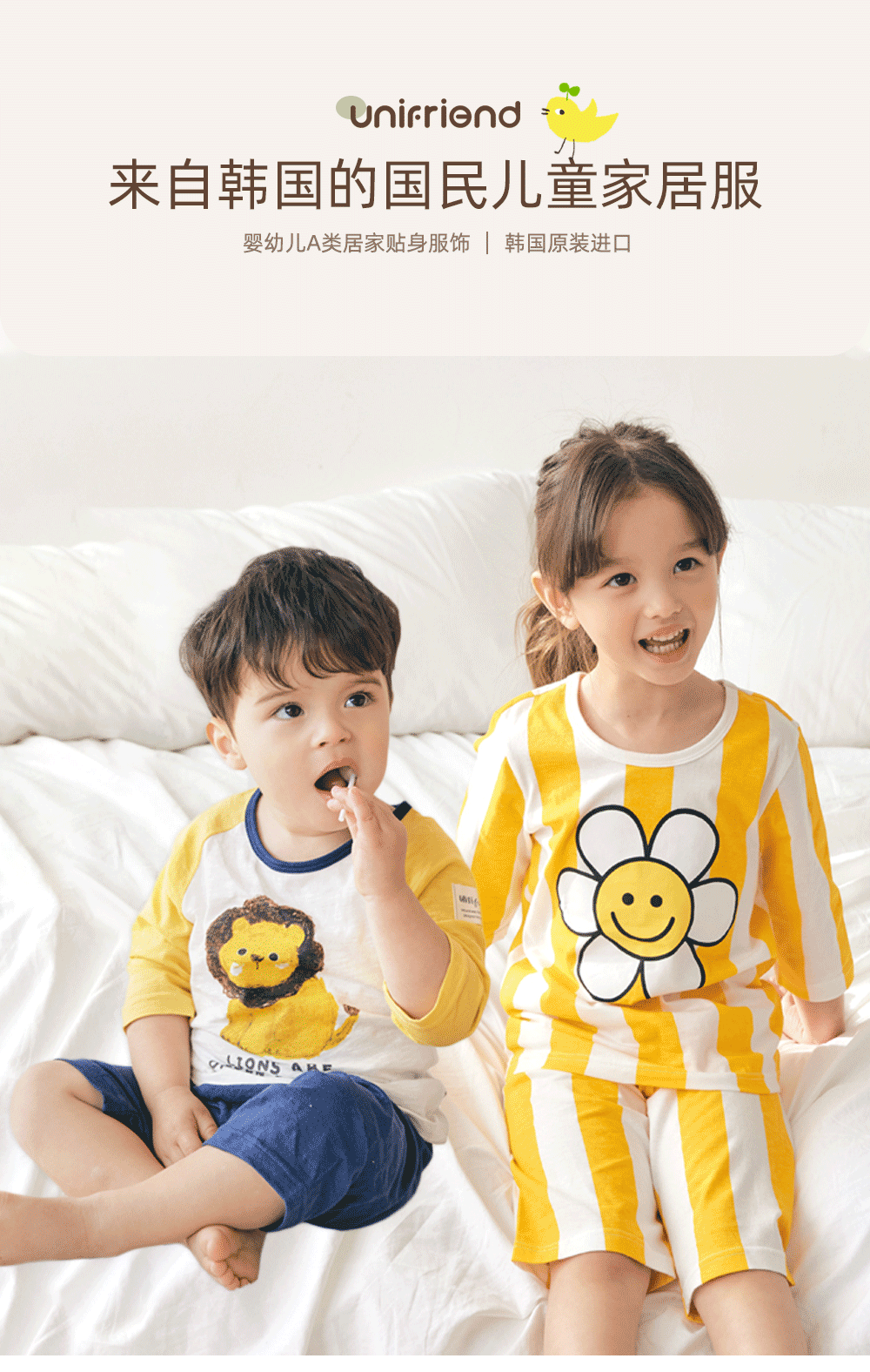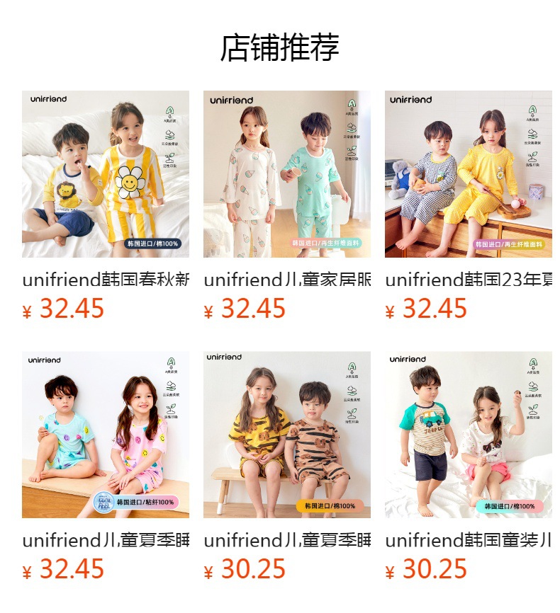 유니프렌드 한국 봄과 가을 새로운 어린이 만화 잠옷 아기 가정복 클래스 A 순면 7 센트