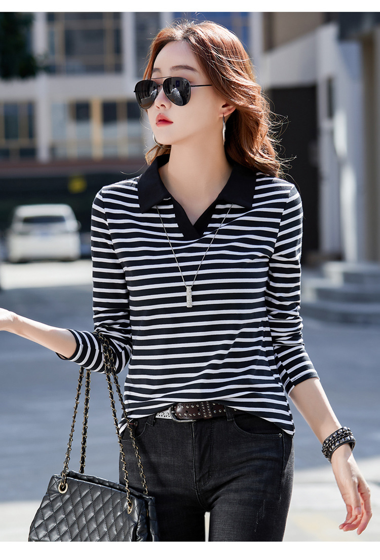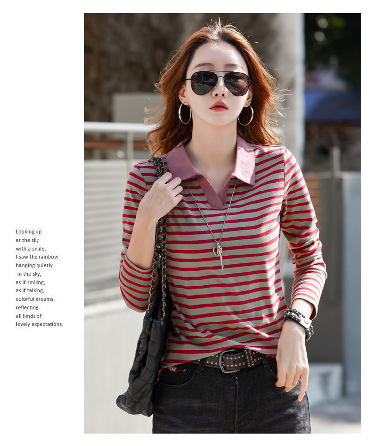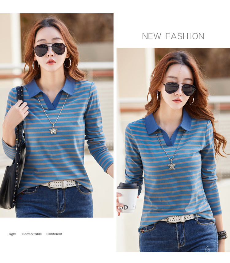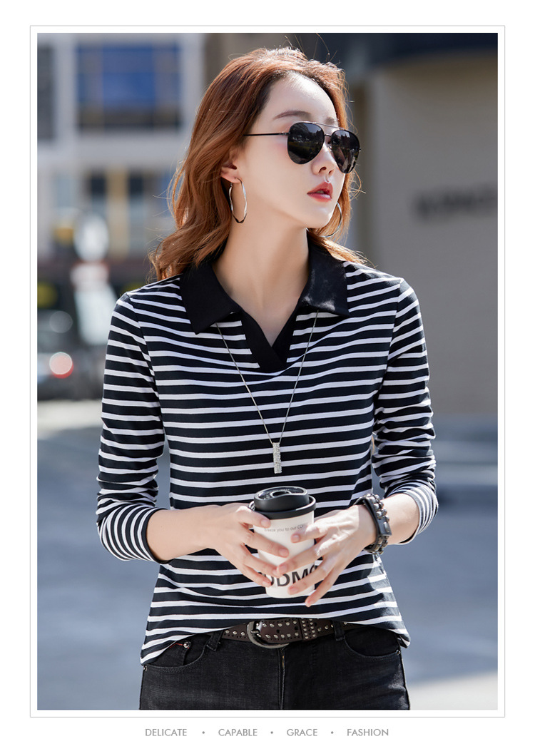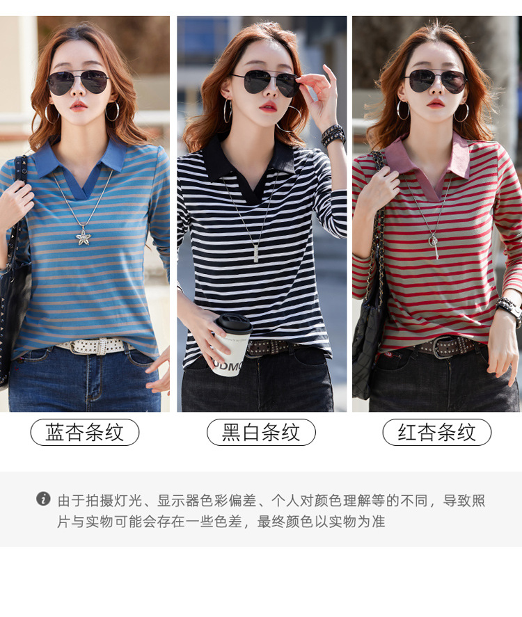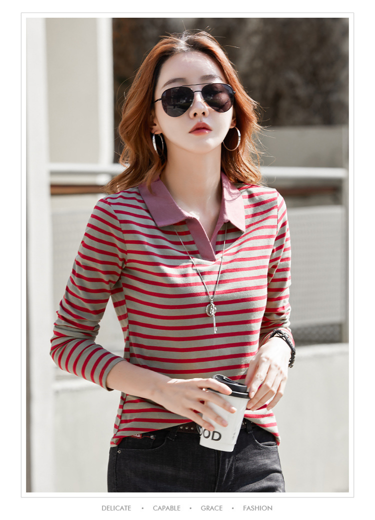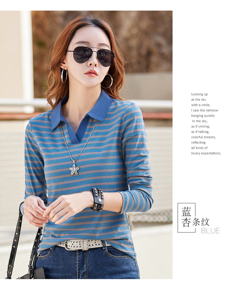 82309 긴팔 POLO 칼라 심플 아우터 티셔츠 여성용 베이스 셔츠 봄과 여름 새로운 슬림핏 슬리밍 솔리드 컬러