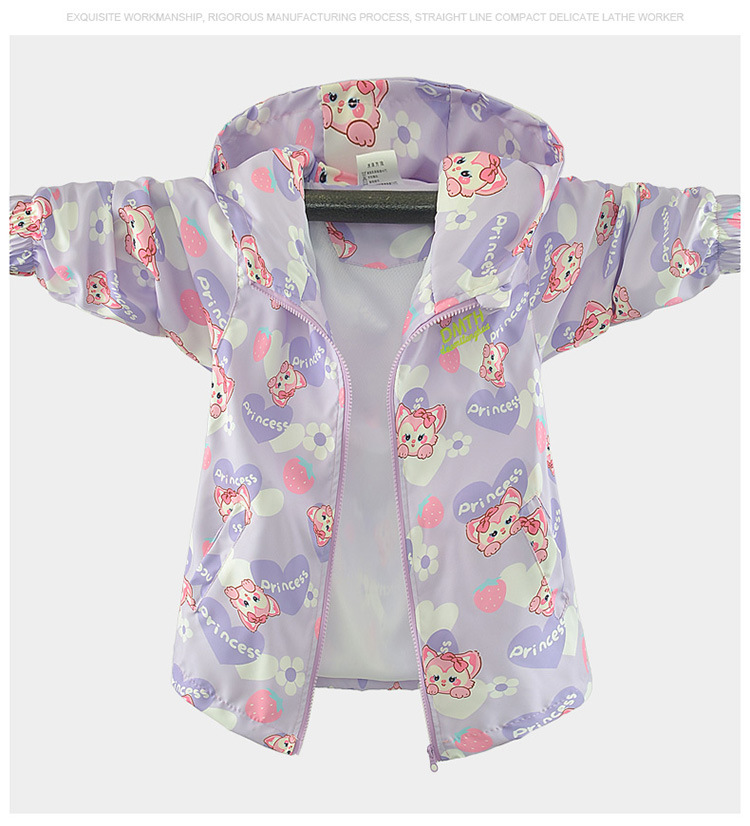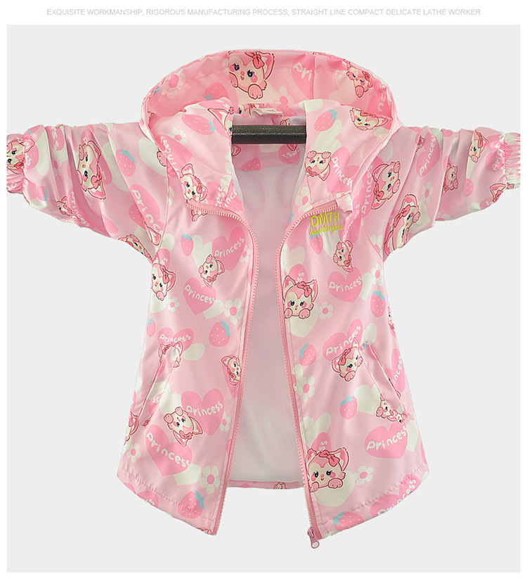 소녀 봄 코트 2024 새로운 어린이 재킷 서양식 봄 및 가을 후드 탑 얇은 소녀의 충전 옷