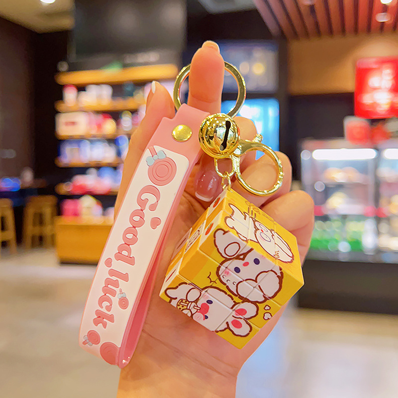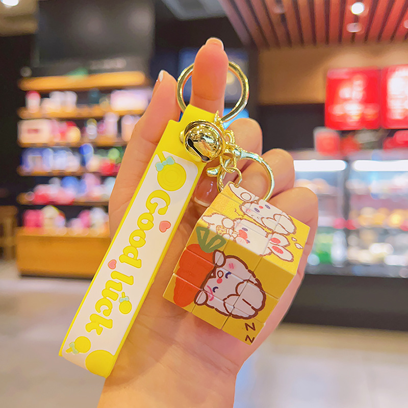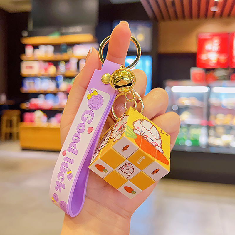 귀여운 토끼 만화 귀여운 커플 책가방 펜던트 창조적 인 감압 루빅스 큐브 키 체인 도매 토끼 가방 펜던트스토어 가기