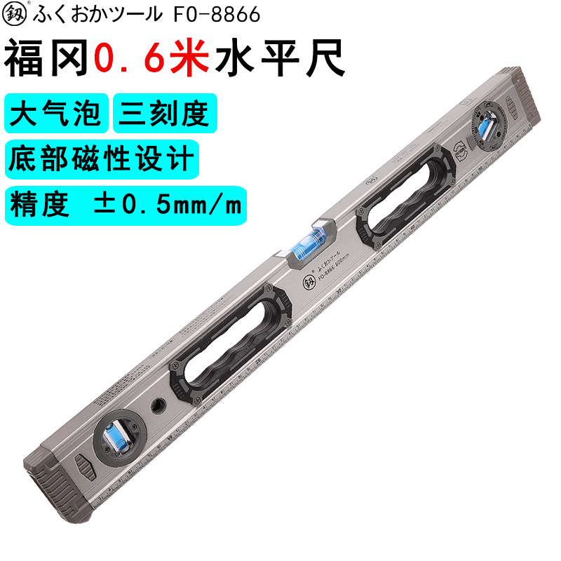 후쿠오카 FO-8866 레벨 600mm 마그네틱 눈금자 알루미늄 합금 두꺼운 건물 레벨 수공구스토어 가기