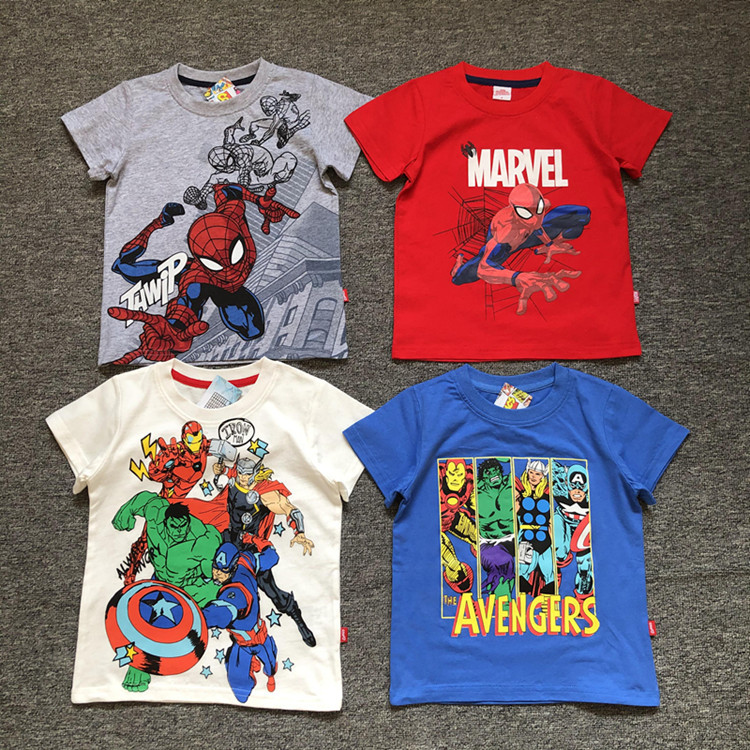 유럽과 미국의 대외 무역 만화 캡틴 스파이더 히어로 시리즈 소년 아동복 반팔 티셔츠스토어 가기