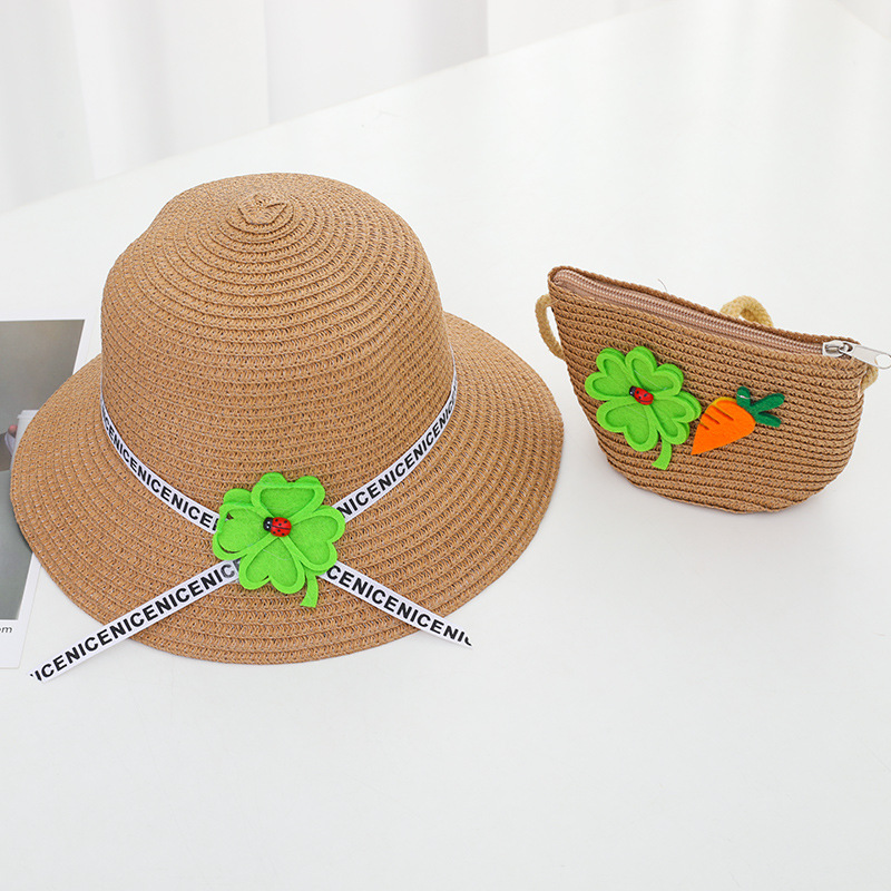 어린이 모자 가방 세트 여자의 귀여운 공주 밀짚 가방 모자 아기 크로스 바디 가방 여아 해바라기 밀짚 모자스토어 가기