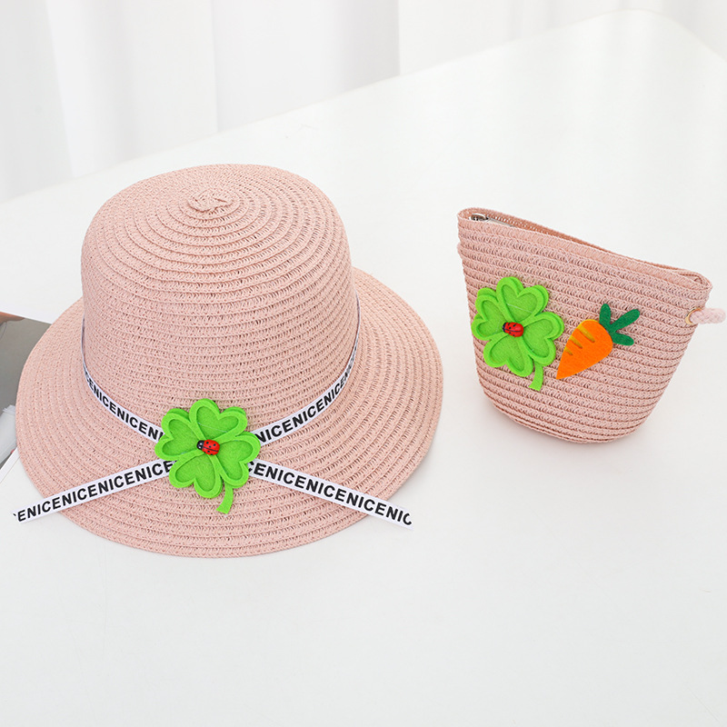 어린이 모자 가방 세트 여자의 귀여운 공주 밀짚 가방 모자 아기 크로스 바디 가방 여아 해바라기 밀짚 모자