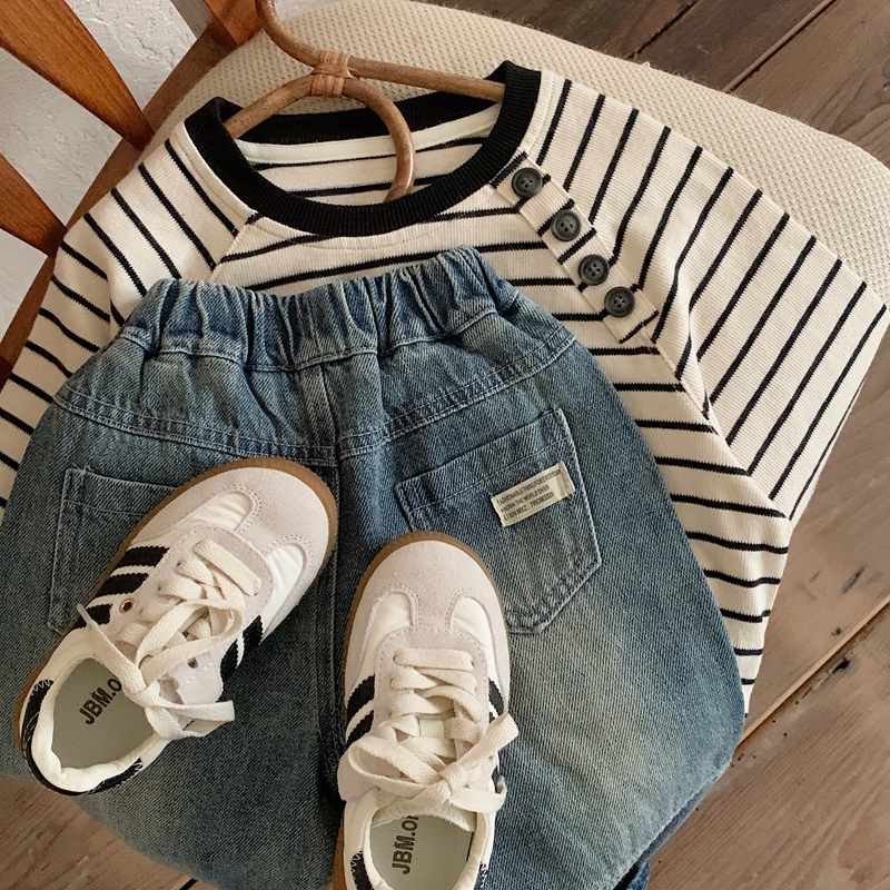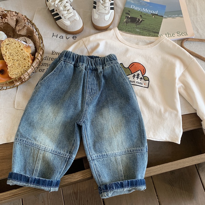 아동용 청바지 2025 봄 신상 남아 바지 유아용 세련된 캐주얼 긴바지 아동복 한국 스타일 스트레이트 팬츠