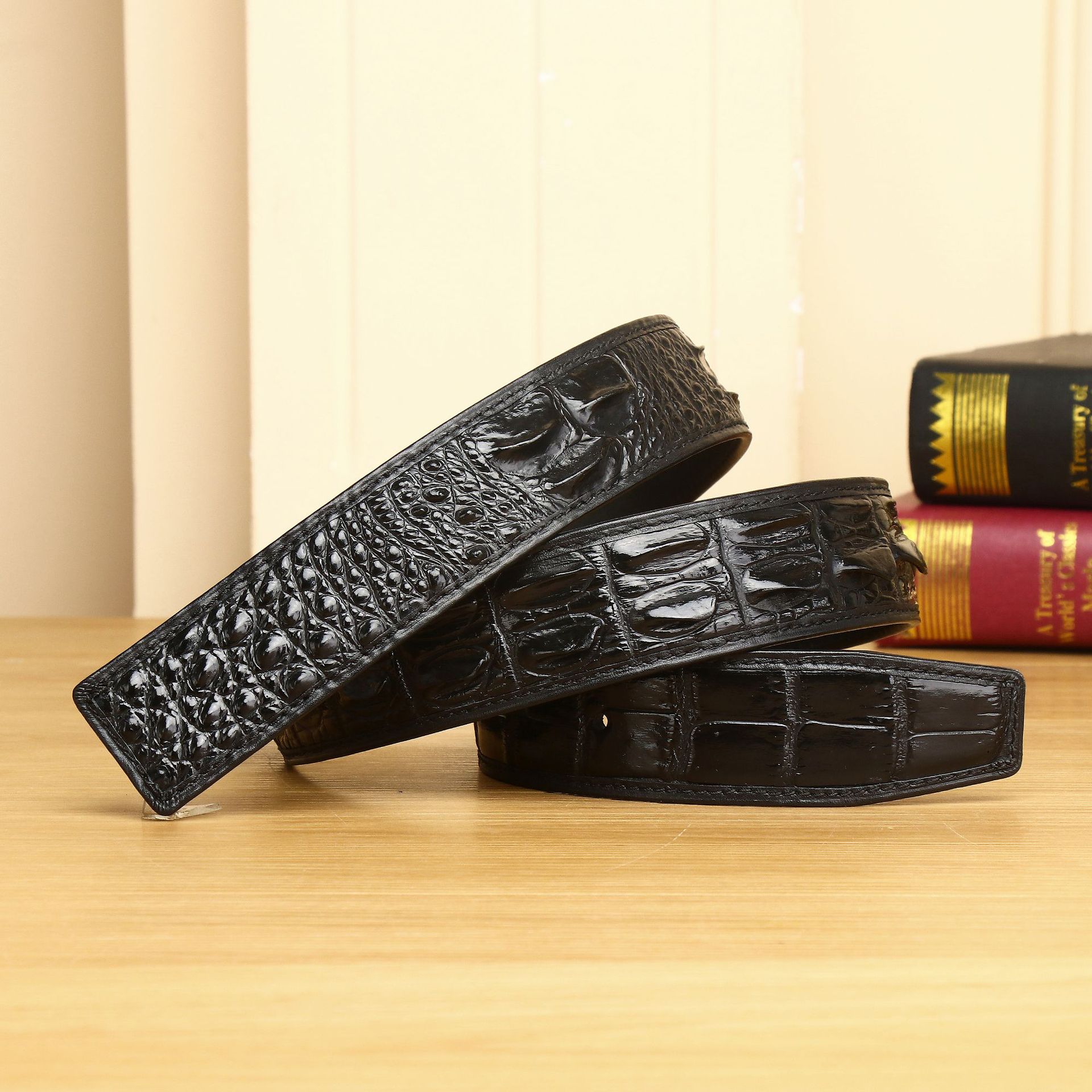 새로운 악어 뼈 패턴 남성 벨트 고급 패션 가죽 벨트 비즈니스 벨트 조수 공장 가공 도매