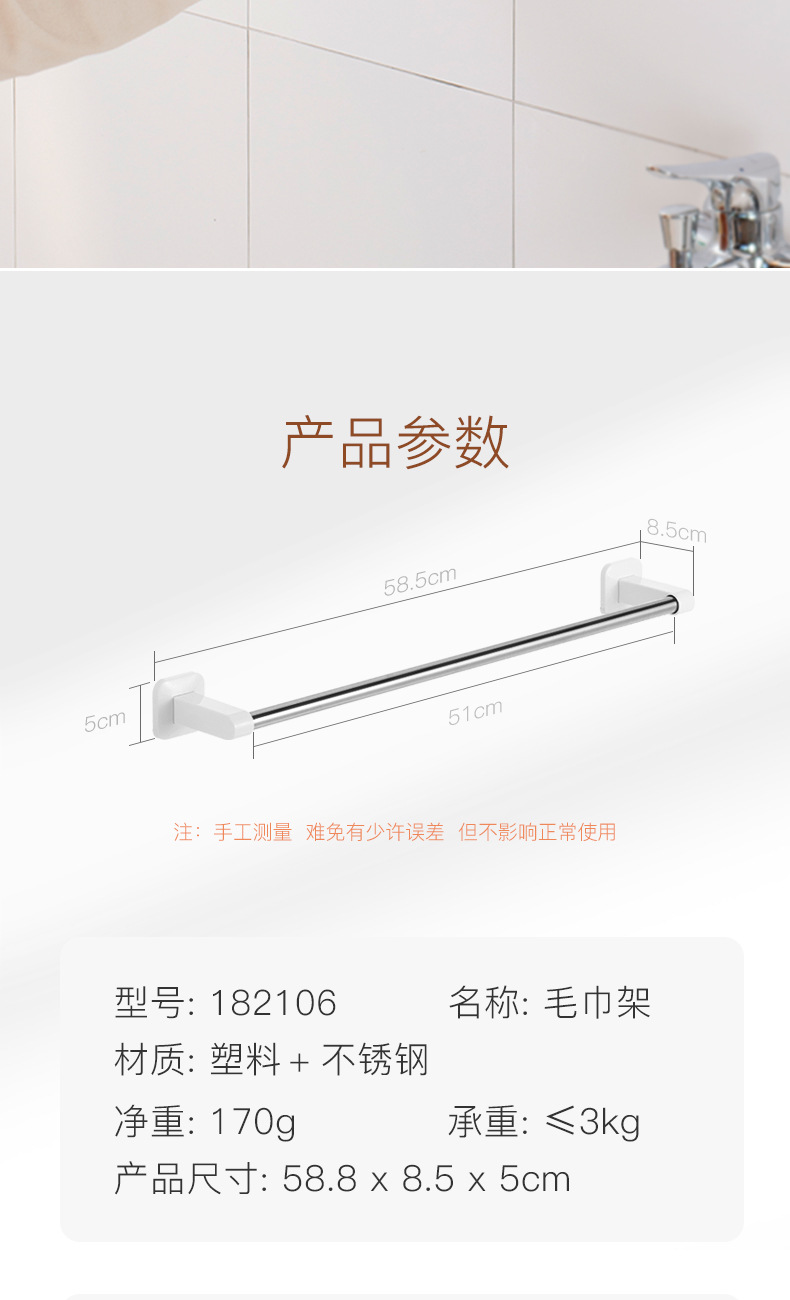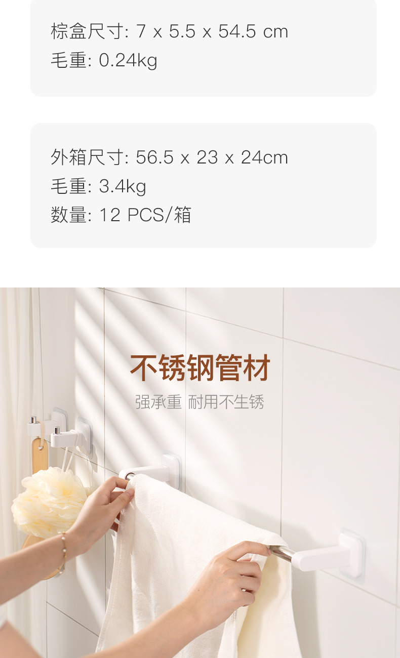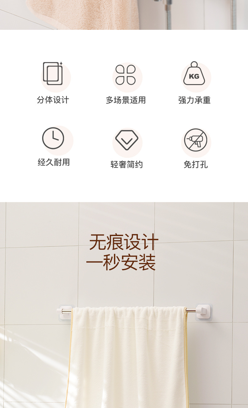 타월걸이 스테인리스 파이프 무타공 세면대 화장실 욕실 싱글 폴 확장형 목욕타월 걸이 흡착식