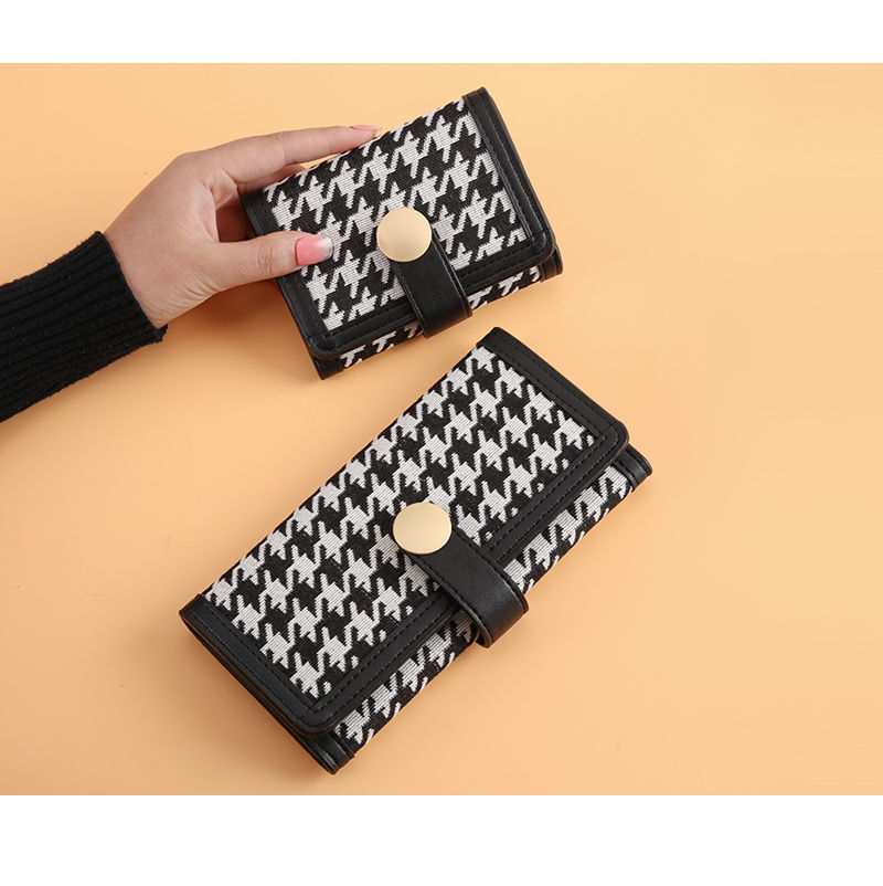 Houndstooth 지갑 여성용 짧은 소형 70% off 동전 지갑 다기능 롱 클러치 백 인기 카드 홀더 여성용 보관스토어 가기