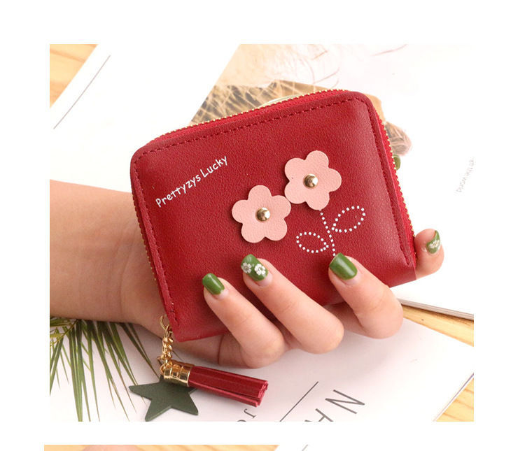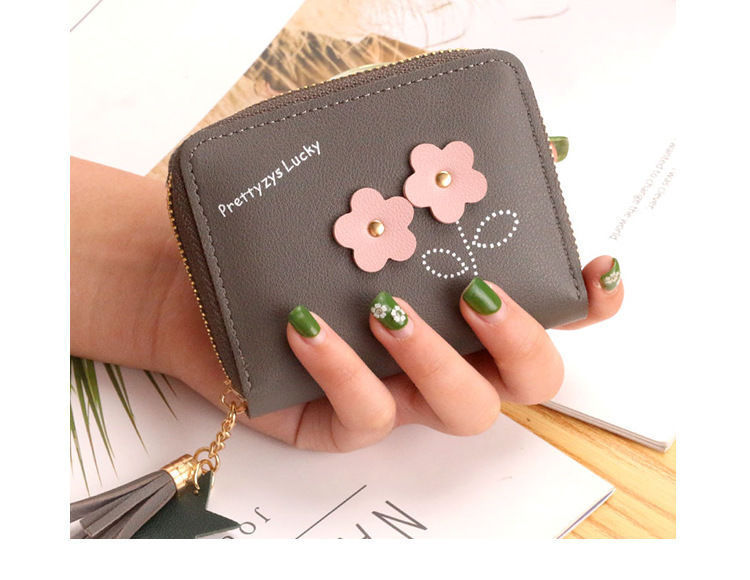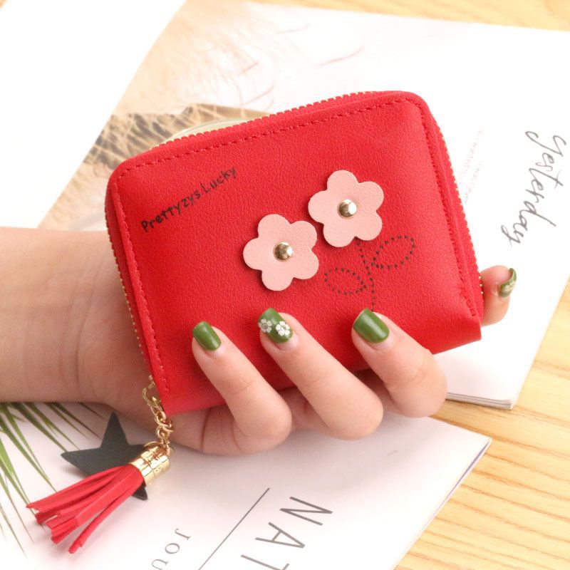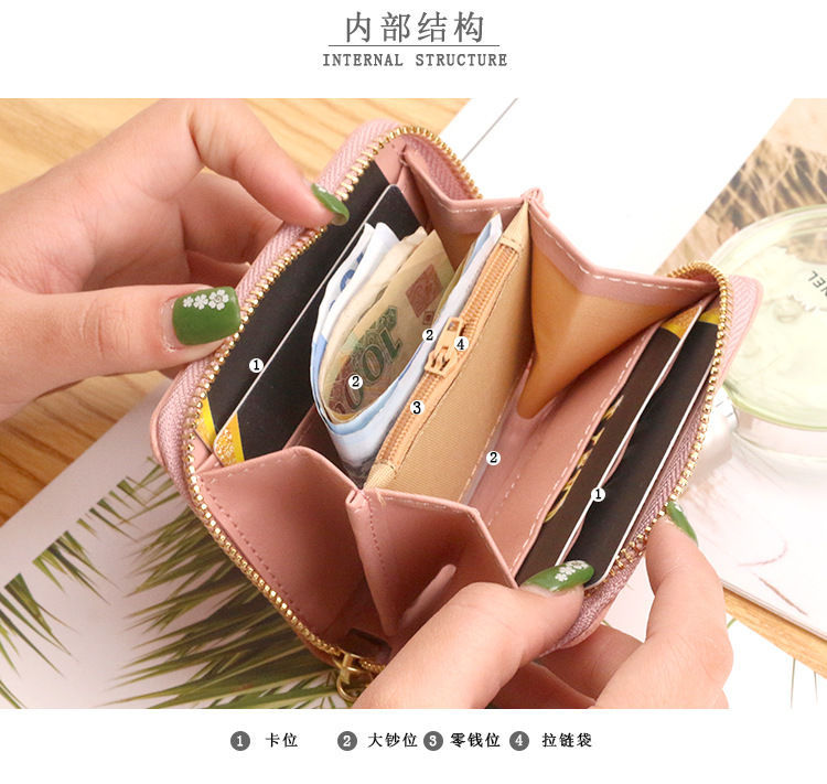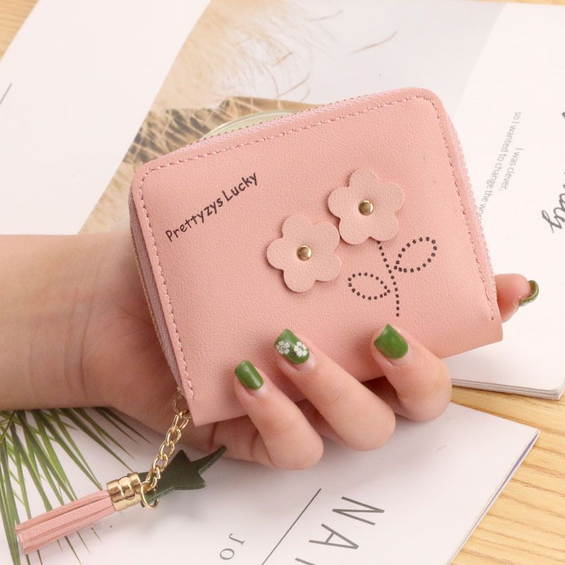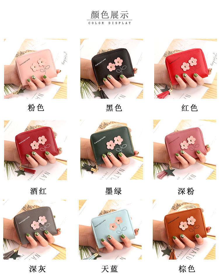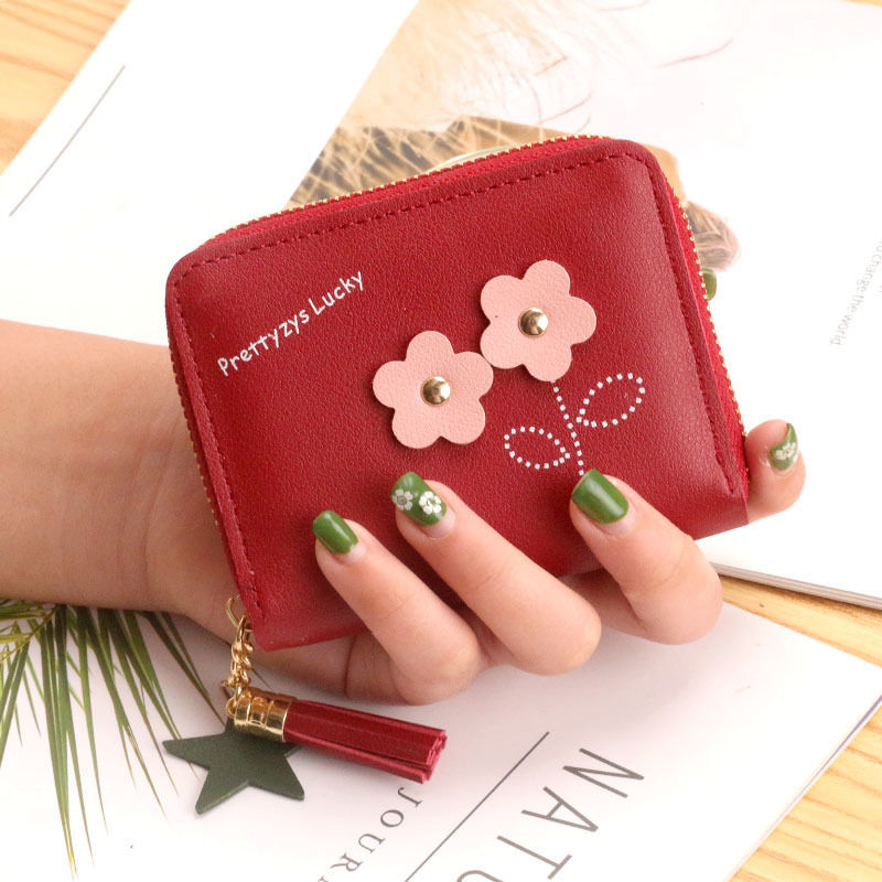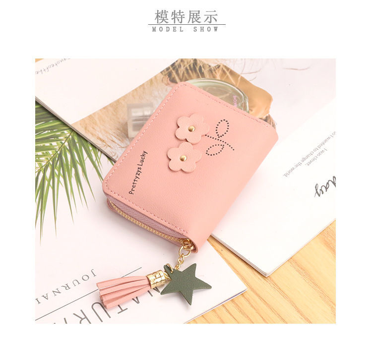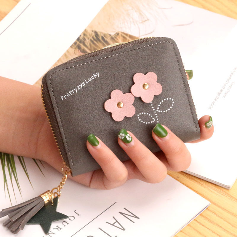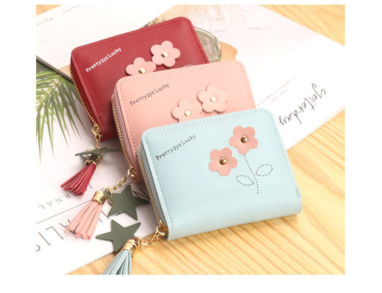 술 꽃 짧은 지갑 여자의 귀여운 미니 소녀 학생 카드 홀더 동전 가방 다기능 동전 지갑 작은 지갑스토어 가기