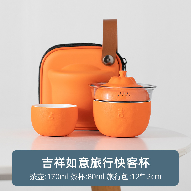 휴대용 익스프레스 컵 한 냄비 두 컵 간단한 못생긴 오렌지 큰 누워 차 냄비 찻잔 여행 차 세트 세트스토어 가기