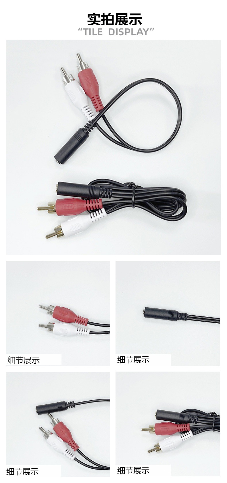 DC3.5 암커넥터에서 듀얼 RCA 로터스 케이블로 변환하는 1대2 오디오 케이블, 스피커 AV 케이블, 신호 전송 연결 케이블
