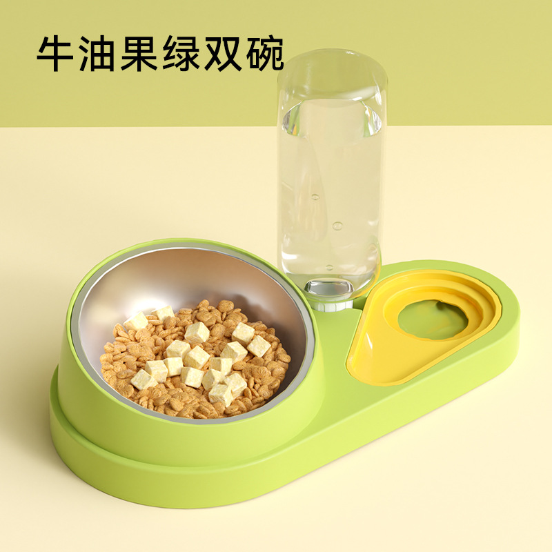고양이 식수 공급기 일체형 아보카도 스테인리스 물그릇 고양이 밥그릇 개 사료 분지 애완 고양이 용품 도매스토어 가기