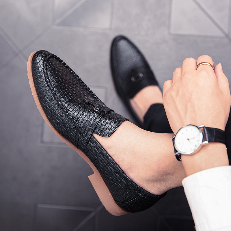 여름 영국 슬립온 술 가죽 신발 남성용 한국식 고각 조각 브록 남성 신발 트렌디 한 비즈니스 가죽 신발