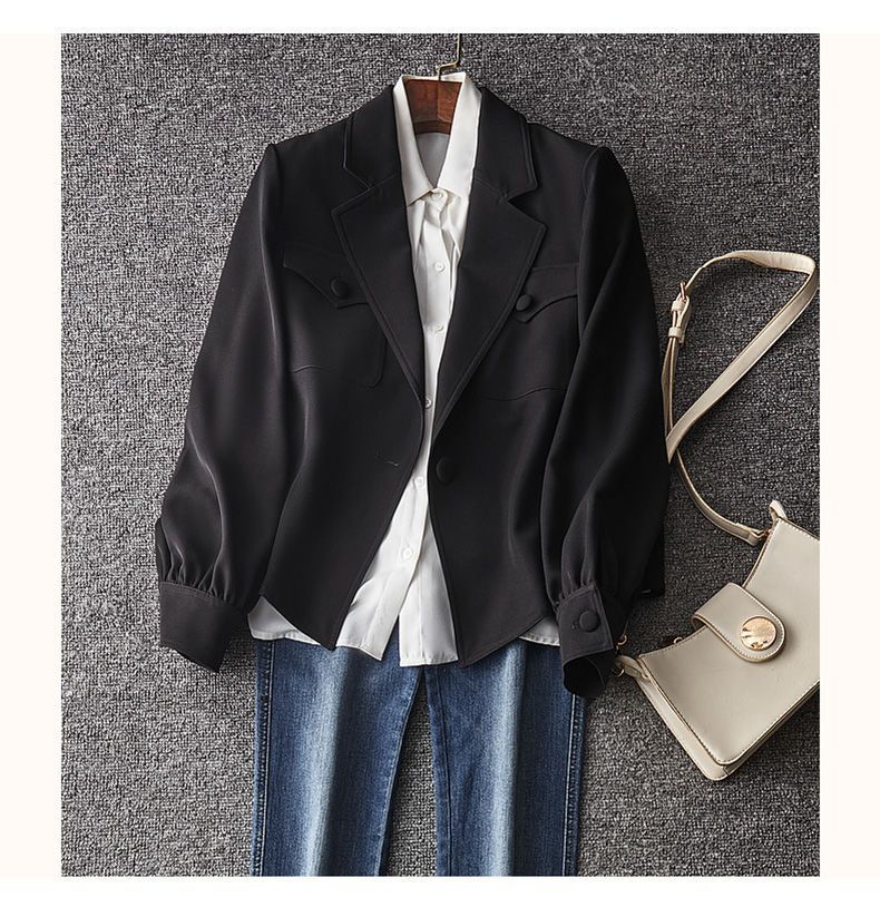 여성을위한 캐주얼 긴팔 재킷 2025 봄, 가을 새로운 한국 스타일 정장 탑 다목적 재킷 느슨한 짧은 윈드 브레이커