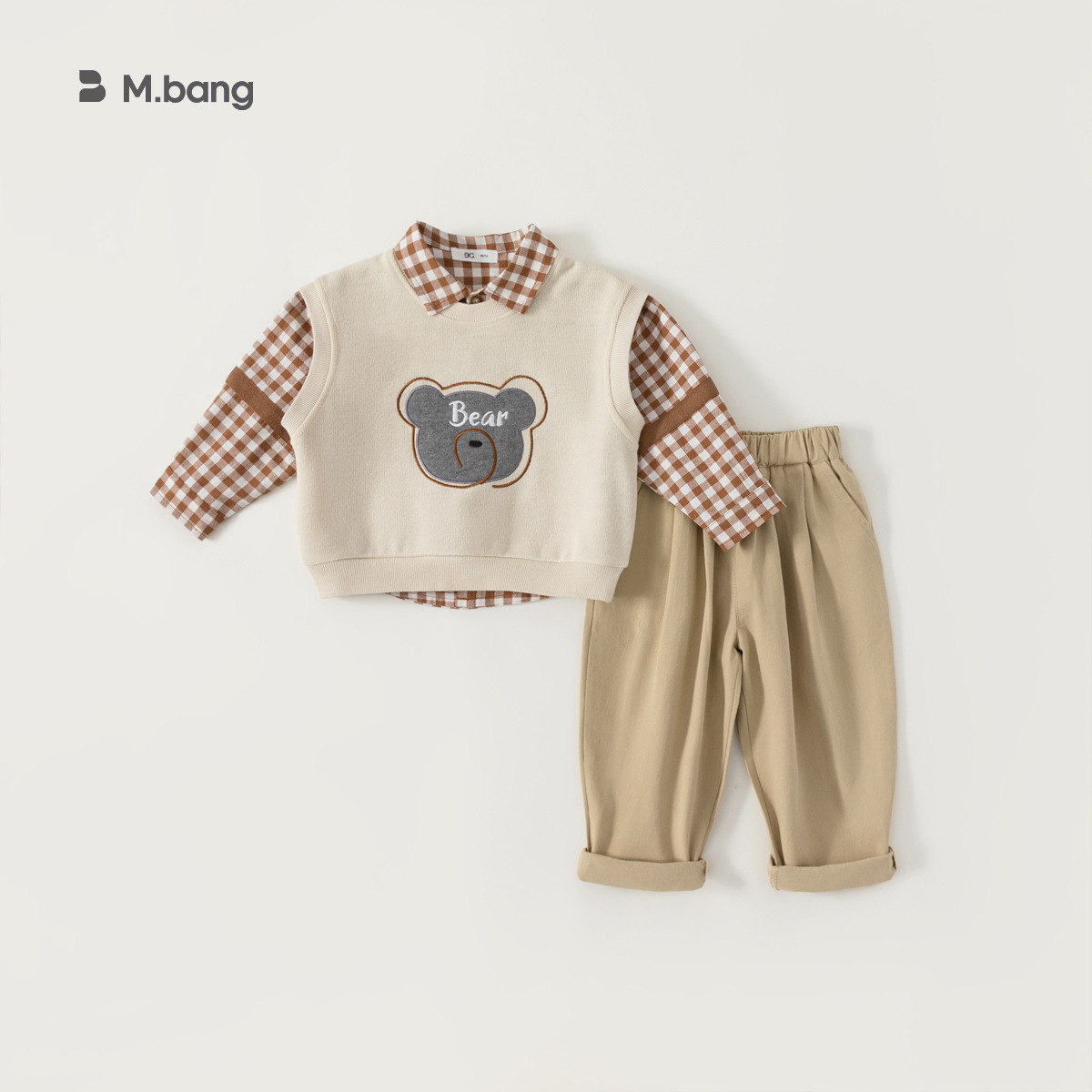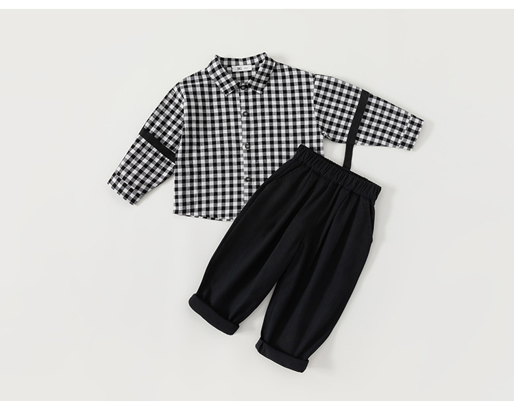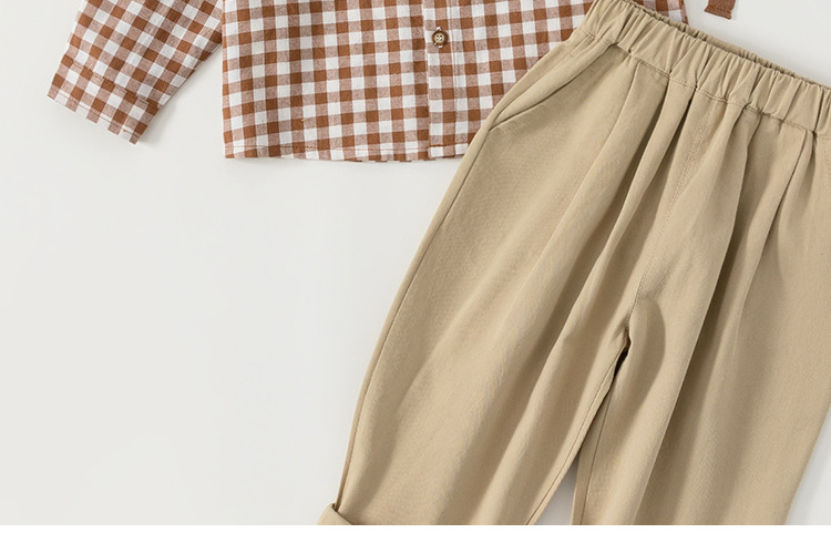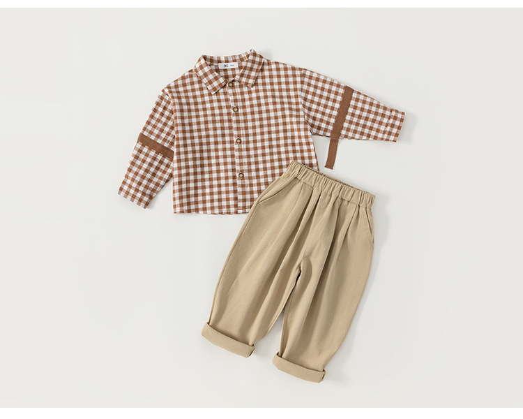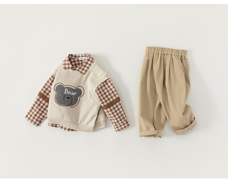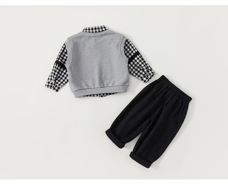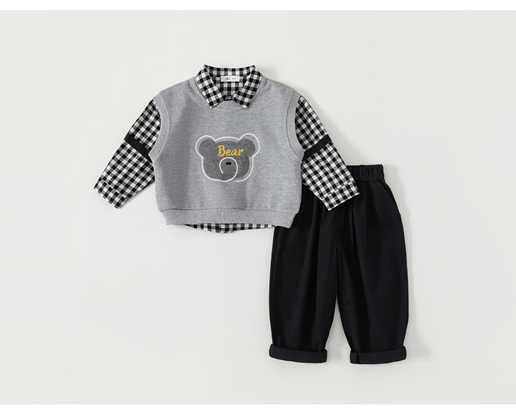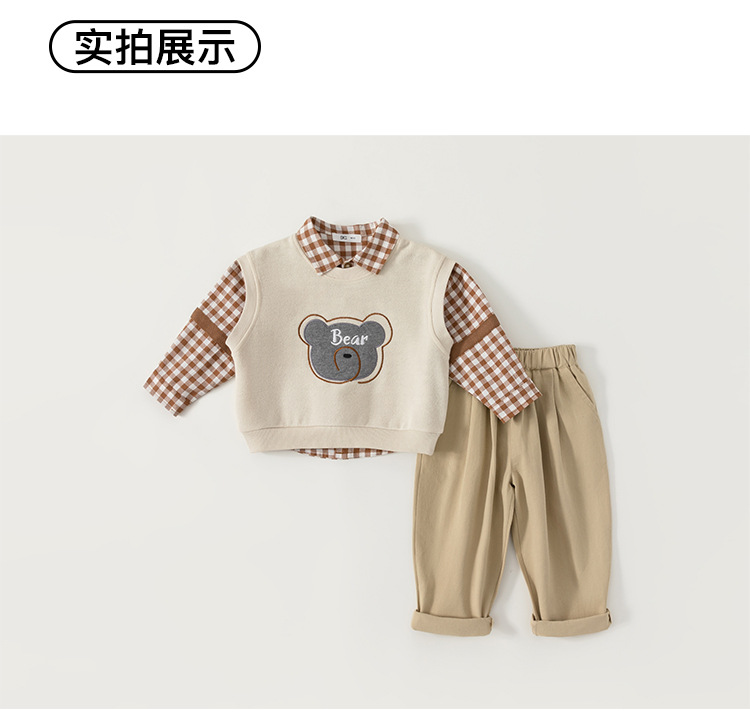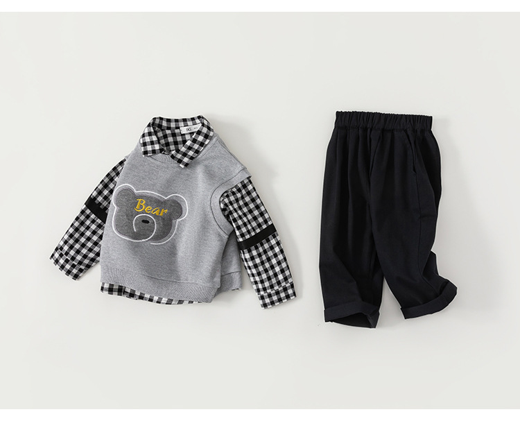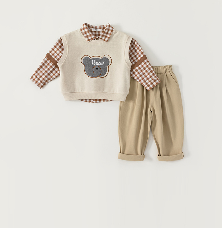 유바오 호주 아동복 조끼, 체크무늬 셔츠, 바지 남아 3종 세트 가을옷, 아카데믹 스타일 유아 여아 세트