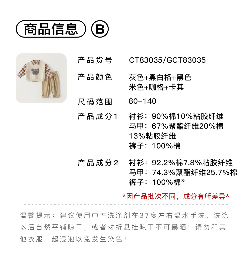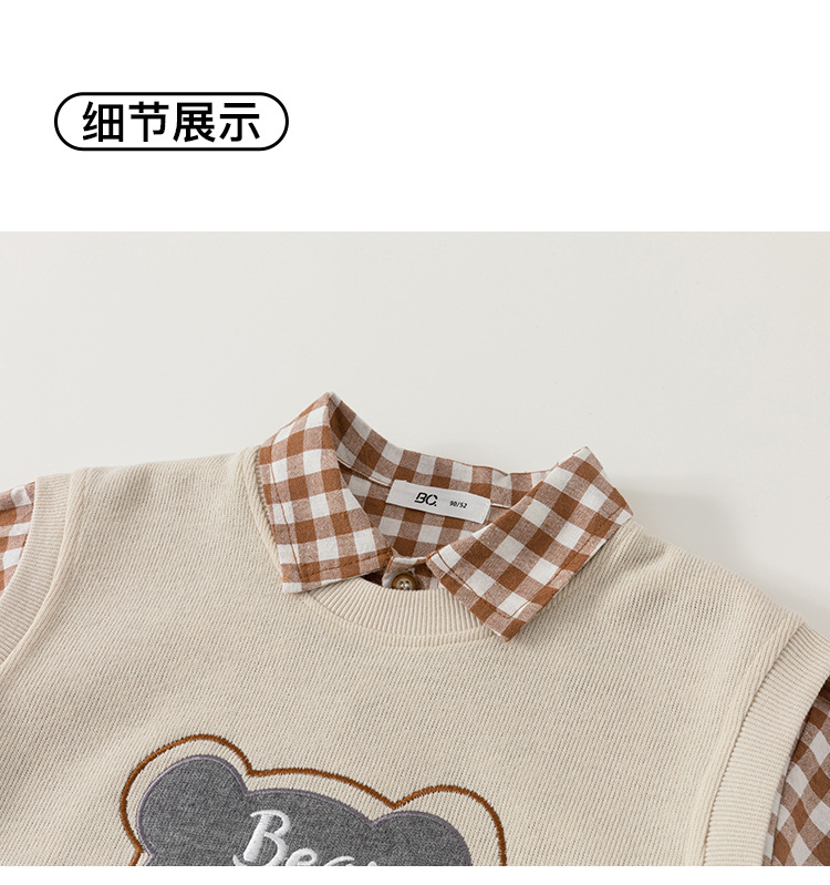 유바오 호주 아동복 조끼, 체크무늬 셔츠, 바지 남아 3종 세트 가을옷, 아카데믹 스타일 유아 여아 세트스토어 가기