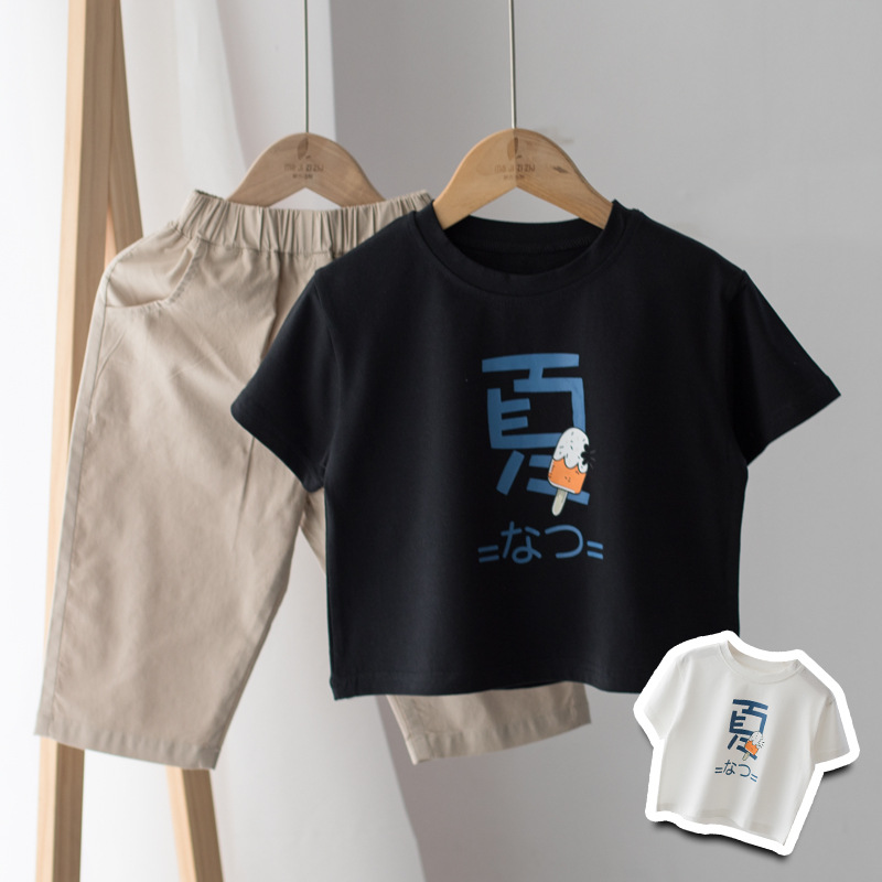순면 어린이 귀여운 아기 서양 스타일 탑 2024 재미있는 텍스트 작고 중간 크기의 소년 소녀 여름을위한 반팔 티셔츠스토어 가기
