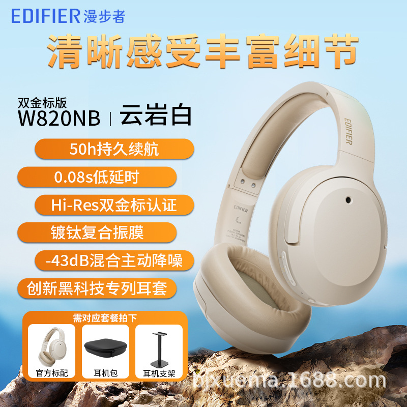 Edifier W820NB 듀얼 골드 라벨 에디션 액티브 노이즈 캔슬링 헤드폰 블루투스 5.2 헤드셋 게임 및 스포츠용 인기 모델스토어 가기