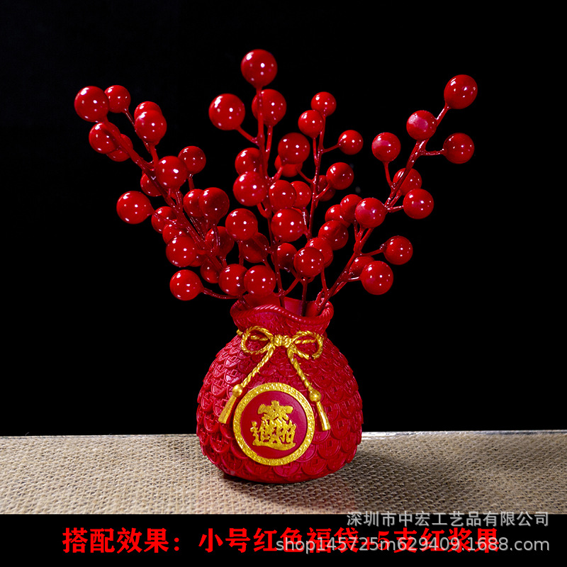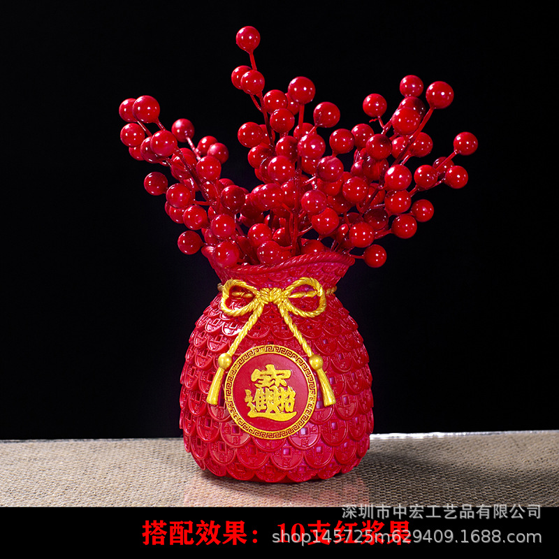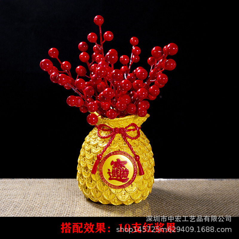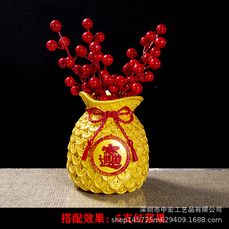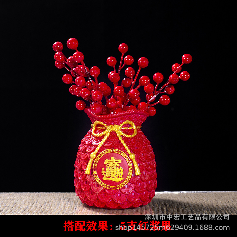 축제 창조적 인 사업 선물 가방 빨간 과일 꽃병 중국 창조적 인 수지 공예 장식 새해 연례 회의스토어 가기