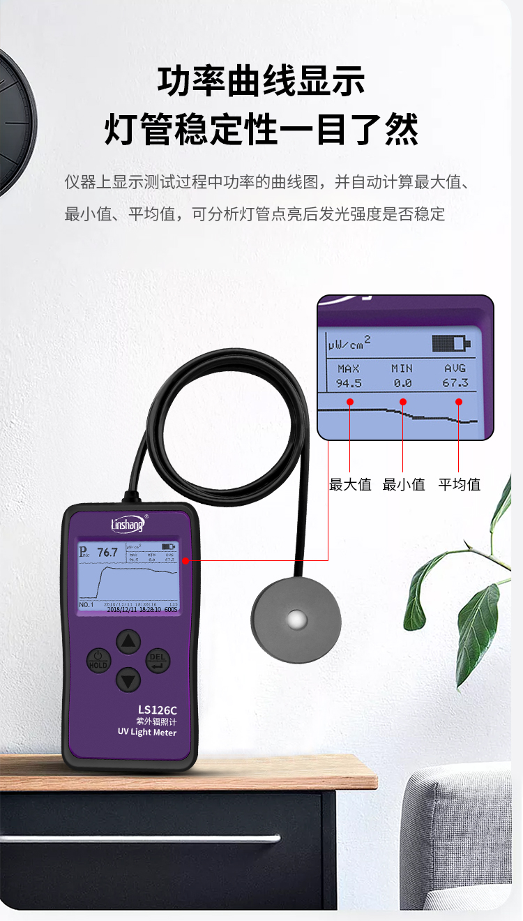 Linshang LS126C UV 테스터 조명계 UVC UV 조사계 살균 램프 강도 검출 게이지스토어 가기